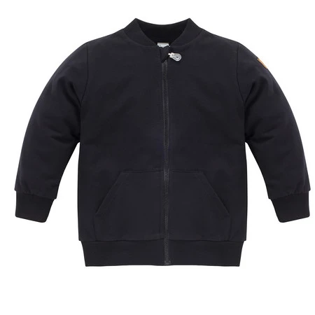 Bluza posiada praktyczny suwak na całej długości, dzięki czemu maluch bez trudu samodzielnie ją założy i zdejmie. Ozdobne ściągacze przy rękawach, dole i szyjce utrzymują ubranko w odpowiednim miejscu, nawet podczas aktywnej zabawy. Na lewym ramieniu znajduje się charakterystyczna naszywka z napisem „Let’s Rock”, nadająca bluzie unikalnego charakteru. Dwie pojemne kieszonki po bokach pomieszczą dziecięce skarby, znalezione na spacerze lub drobne zabawki.
