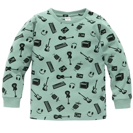 Bluzka Z Długim Rękawem Lets Rock Print Instrumenty Zielony