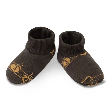 Buciki niemowlęce z dzianiny dresowej „Old Cars” grafitowe | 100% bawełna