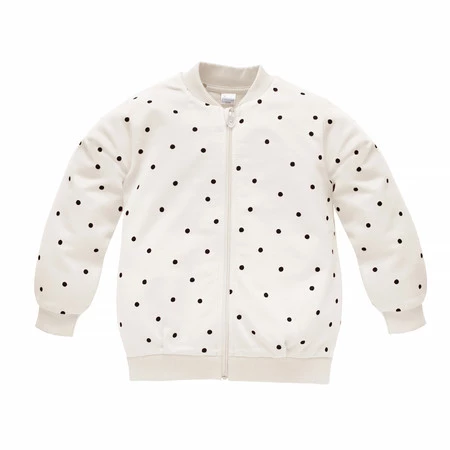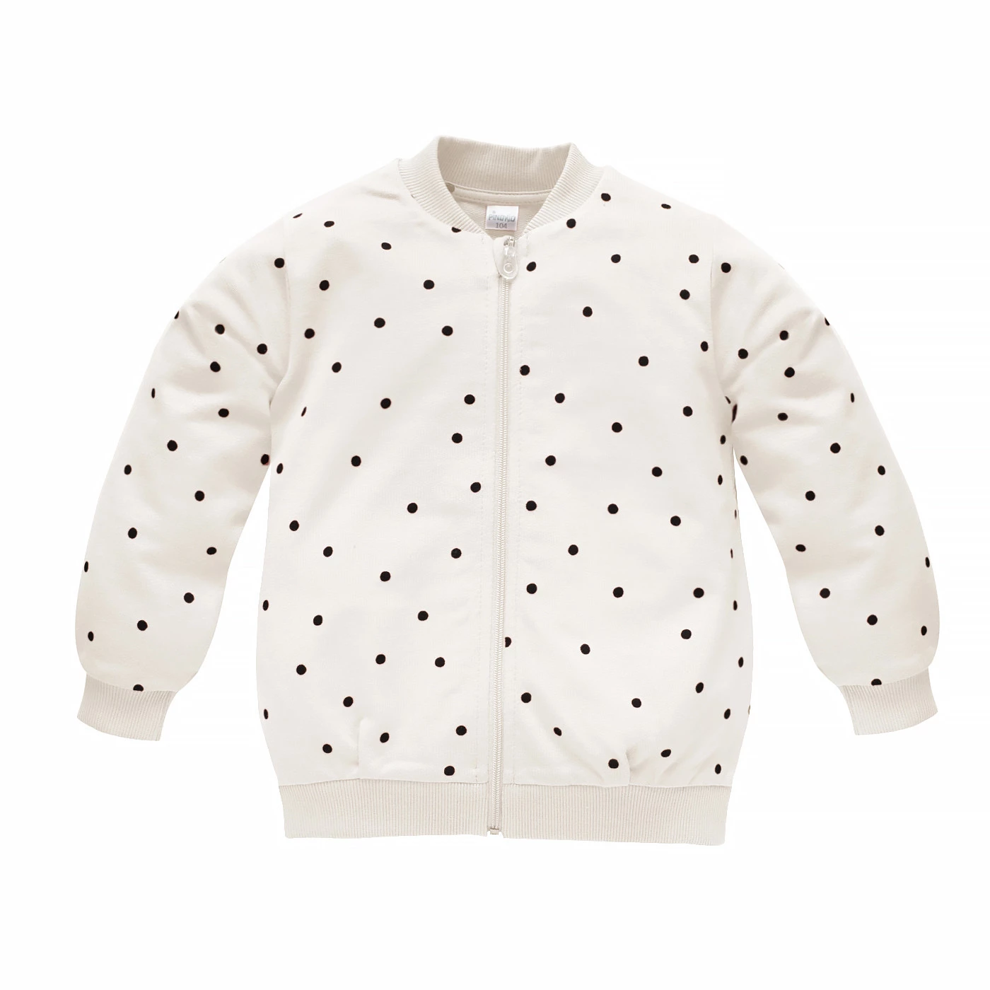 Bluza rozpinana z kolekcji Tres Bien to must have w garderobie każdego przedszkolaka. Uszyta z miękkiej, 100% bawełnianej dresówki w modnym odcieniu écru i ozdobiona subtelnym nadrukiem czarnych kropeczek w stylu francuskim, doskonale łączy elegancję z codziennym komfortem.