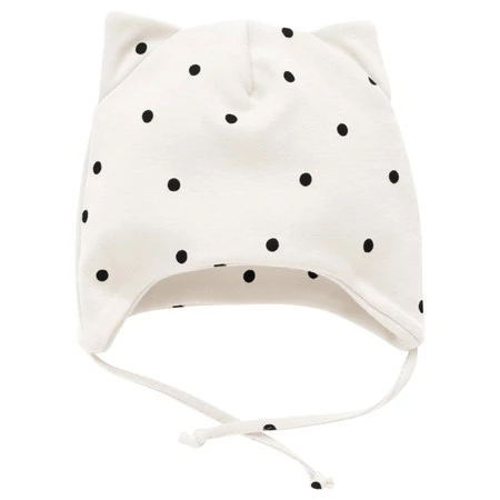 • Czapka niemowlęca wiązana pod brodą ecru w groszki „Très Bien” | Pinokio