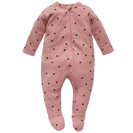 Bawełniany pajacyk niemowlęcy różowy w czarne kropeczki na suwak – Très Bien