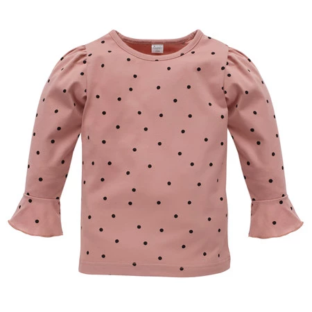 Bluzka dziecięca z długim rękawem Tres Bien – różowa w groszki