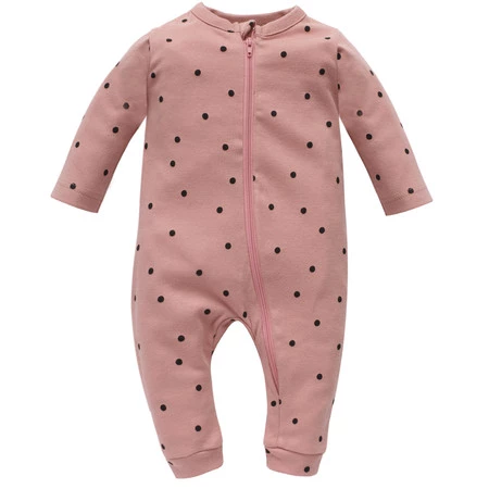 • Bawełniany pajacyk niemowlęcy różowy w groszki na suwak – Très Bien