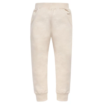 W pasie wszyta jest praktyczna, elastyczna gumka, dzięki której spodnie idealnie utrzymują się na miejscu, nie krępując ruchów dziecka podczas codziennych aktywności. Dwie pojemne kieszonki po bokach pozwalają dziecku przechowywać swoje skarby, a efektowne ściągacze przy nogawkach utrzymują ubranko we właściwej pozycji i nadają mu sportowego charakteru.