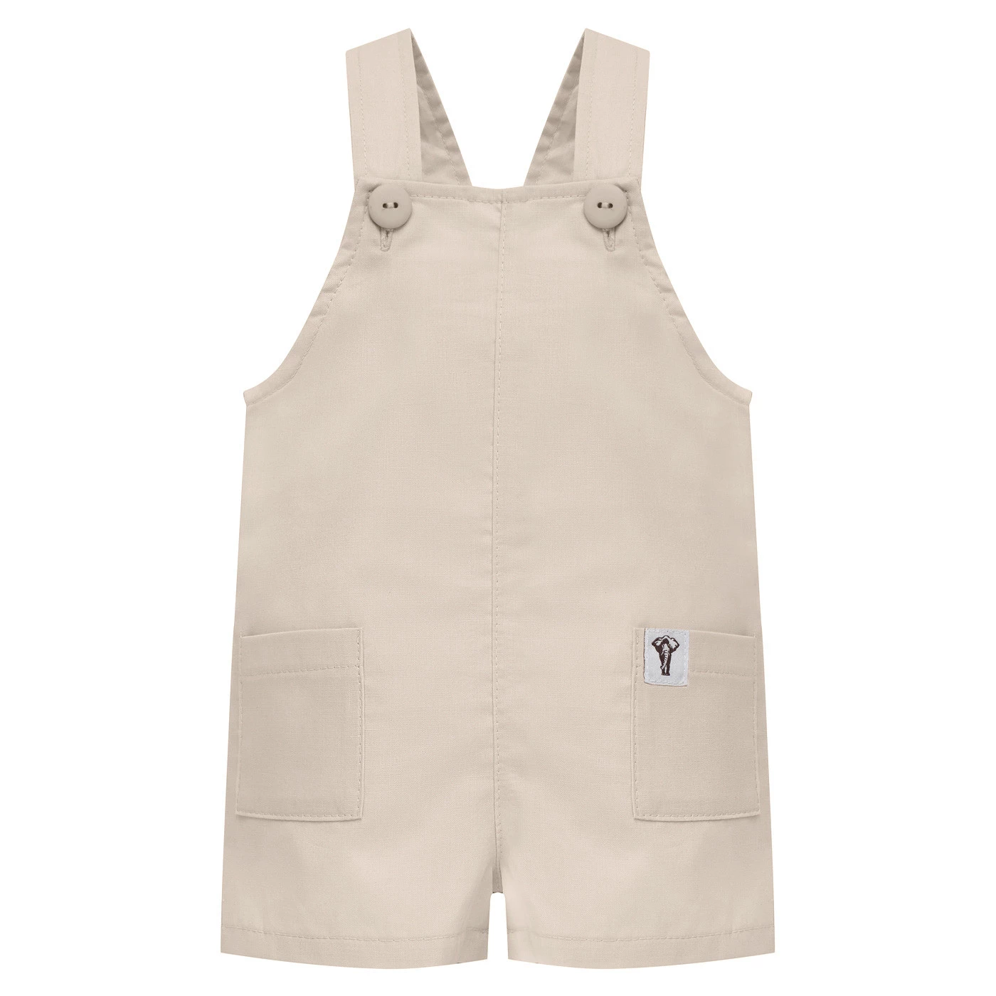 Ogrodniczki beżowe z naszywką słonika – kolekcja Safari, 100% bawełna