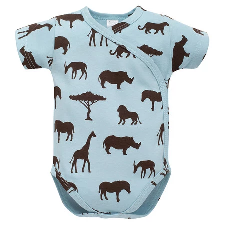 • Body kopertowe z krótkim rękawem – niebieskie z motywem zoo | Safari | 100% bawełna Premium