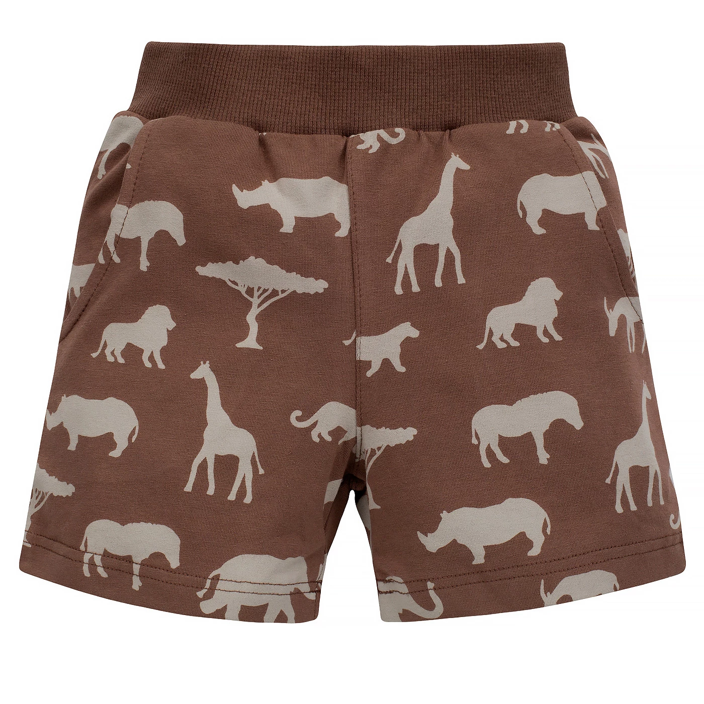 - Brązowe dzianinowe spodenki chłopięce z motywem zoo – Safari | Pinokio