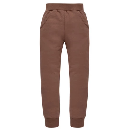 W pasie wszyta jest praktyczna, elastyczna gumka, dzięki której spodnie idealnie utrzymują się na miejscu, nie krępując ruchów dziecka podczas codziennych aktywności. Dwie pojemne kieszonki po bokach pozwalają dziecku przechowywać swoje skarby, a efektowne ściągacze przy nogawkach utrzymują ubranko we właściwej pozycji i nadają mu sportowego charakteru.