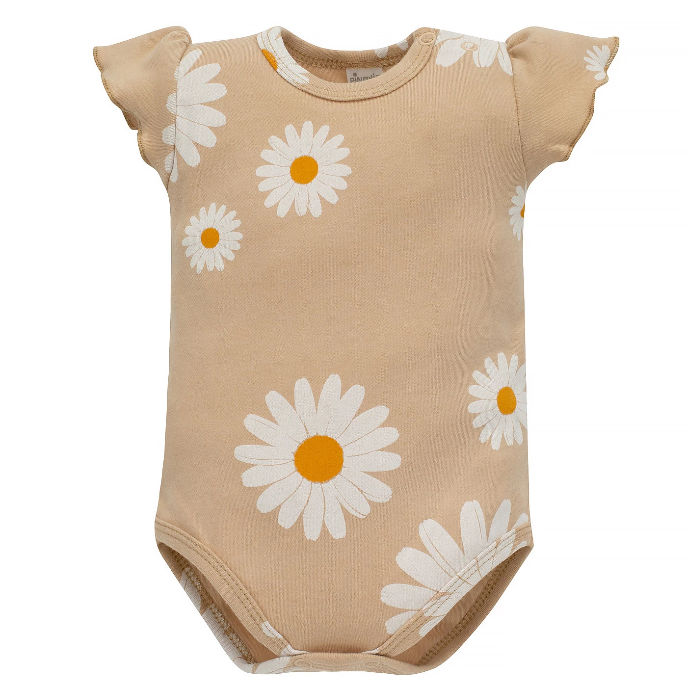 Body Niemowlęce Z Krótkim Rękawem Daisy Stokrotki Beżowy
