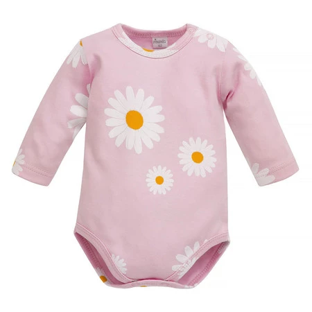 Body niemowlęce z długim rękawem Daisy – różowe, 100% bawełna, z nadrukiem stokrotek