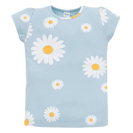 - Bluzka dziewczęca z krótkim rękawem Daisy – niebieska ze stokrotkami