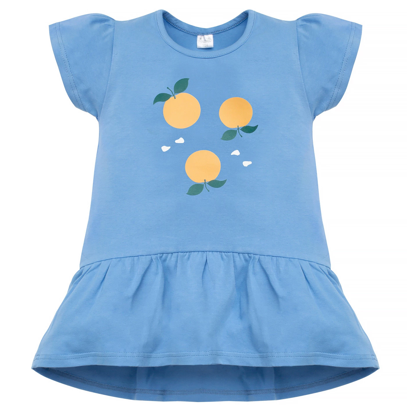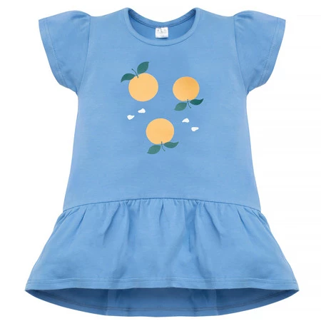 Stylowa i wygodna tunika dziewczęca z krótkim rękawem to idealny wybór do żłobka, przedszkola i na co dzień. Uszyta została z delikatnej, oddychającej dzianiny bawełnianej w modnym błękitnym kolorze, ozdobionej radosnym nadrukiem w pomarańcze. Dodatek elastanu sprawia, że ubranko doskonale się układa, a jednocześnie nie krępuje ruchów dziecka.