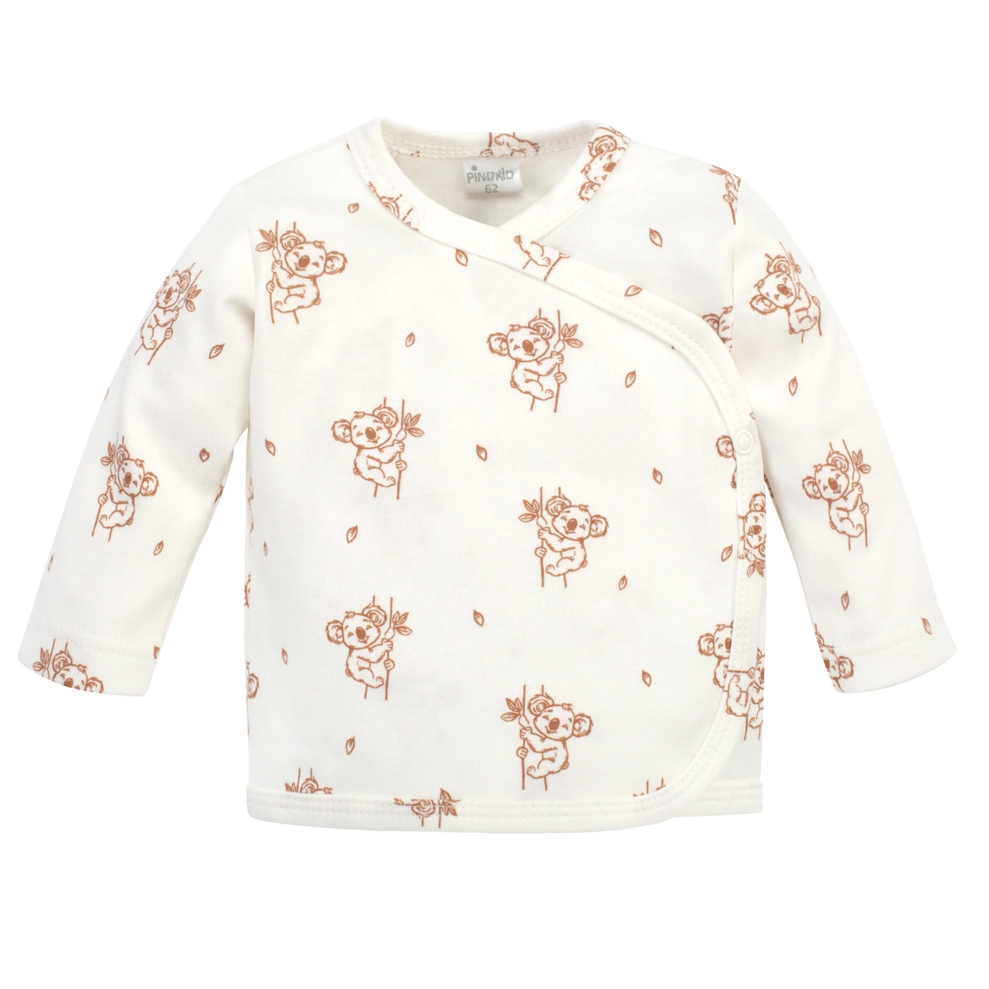 • Kolor i wzór: Ecru z nadrukiem misiów koala – subtelny, neutralny design odpowiedni dla dziewczynki i chłopca.