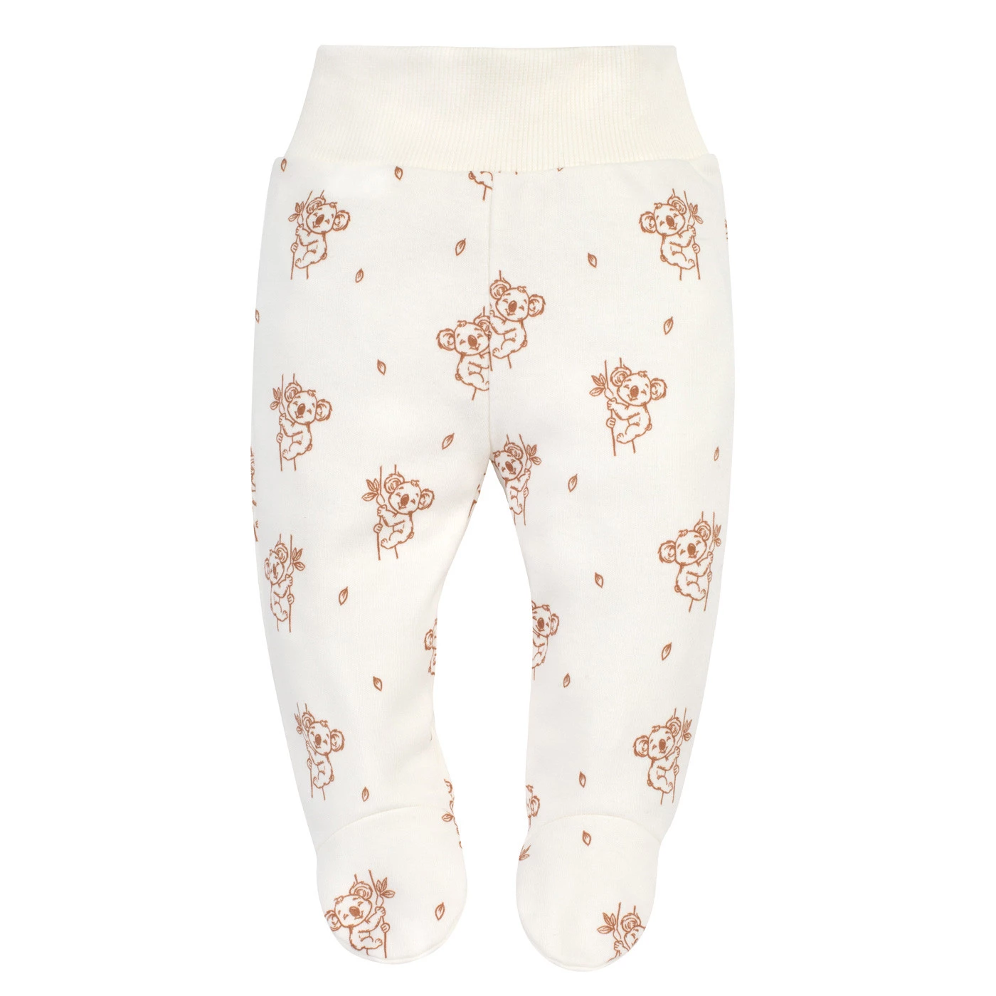 Model w kolorze ecru z nadrukiem w misie koala nie tylko prezentuje się wyjątkowo uroczo, ale również idealnie komponuje się z innymi elementami kolekcji. Anatomiczny krój i elastyczny, szeroki pas nie krępują ruchów maluszka i delikatnie otulają brzuszek bez ucisku. Pełne stópki chronią nóżki dziecka przed wychłodzeniem – bez konieczności zakładania dodatkowych skarpetek.