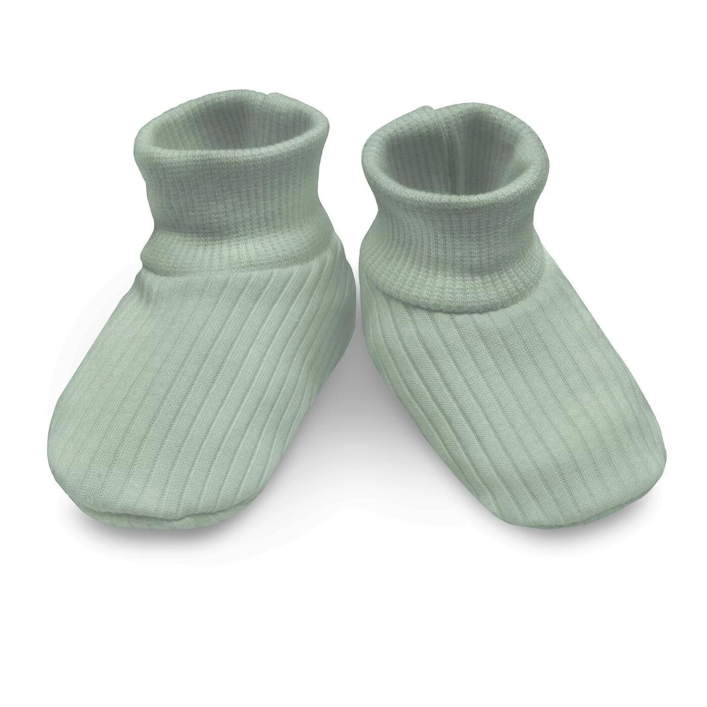 Buciki zostały uszyte z wysokiej jakości, przyjemnej w dotyku dzianiny bawełnianej w prążek (100% bawełna) w modnym zielonym kolorze, który doskonale pasuje do codziennych stylizacji Twojego dziecka. Ich główną zaletą jest miękka, oddychająca dzianina, delikatna dla skóry niemowlęcia oraz podwójna podeszwa, która zapewnia dodatkową ochronę przed chłodem, dzięki czemu stópki dziecka pozostają ciepłe nawet w chłodniejsze dni.