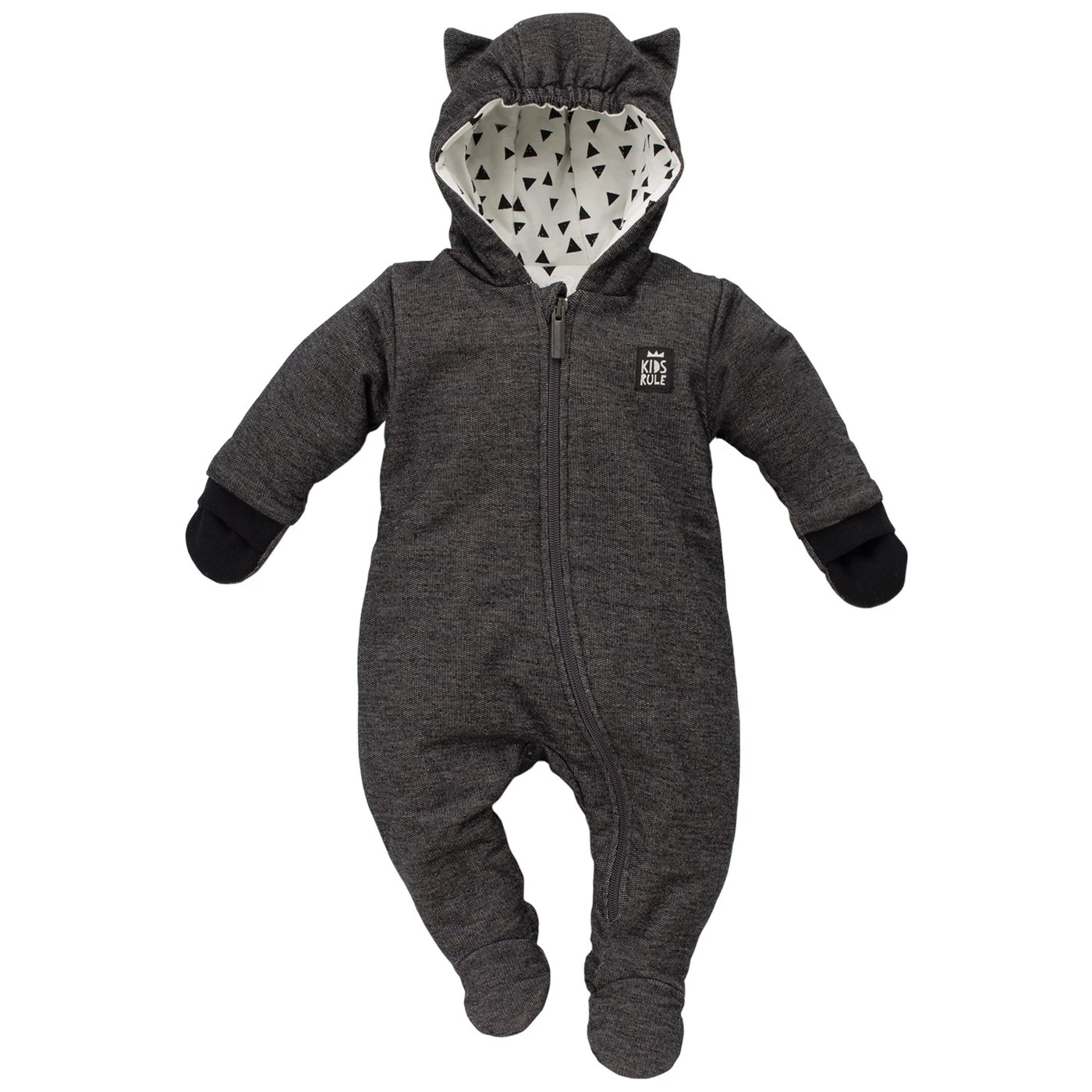 • Trzywarstwowy bawełniany kombinezon niemowlęcy Kotek – czarno-szary melanż