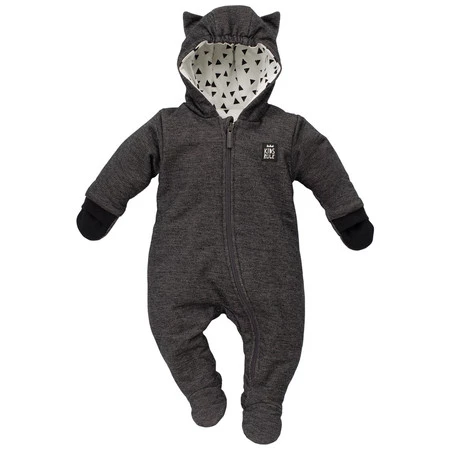 Trzywarstwowy bawełniany kombinezon niemowlęcy Kotek – czarno-szary melanż