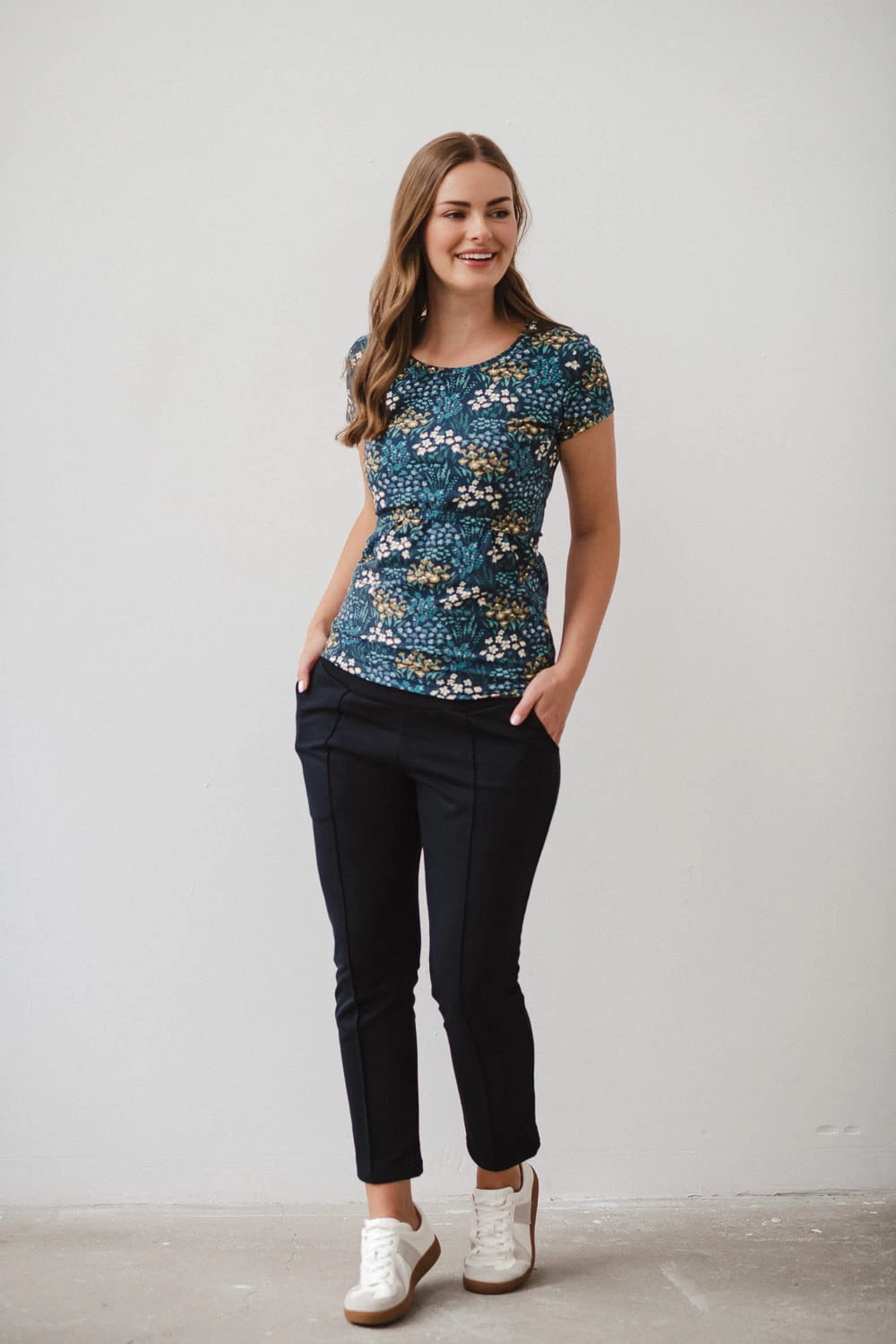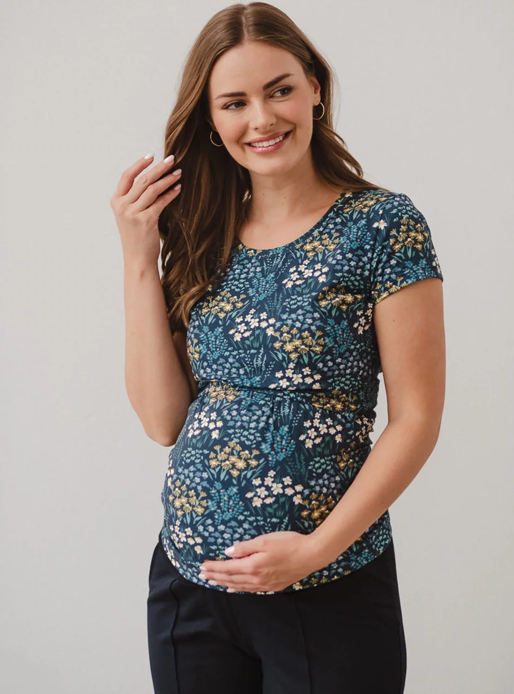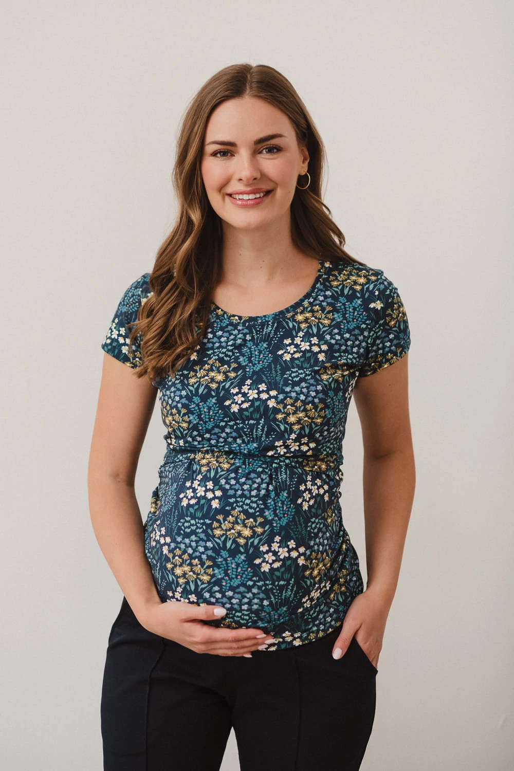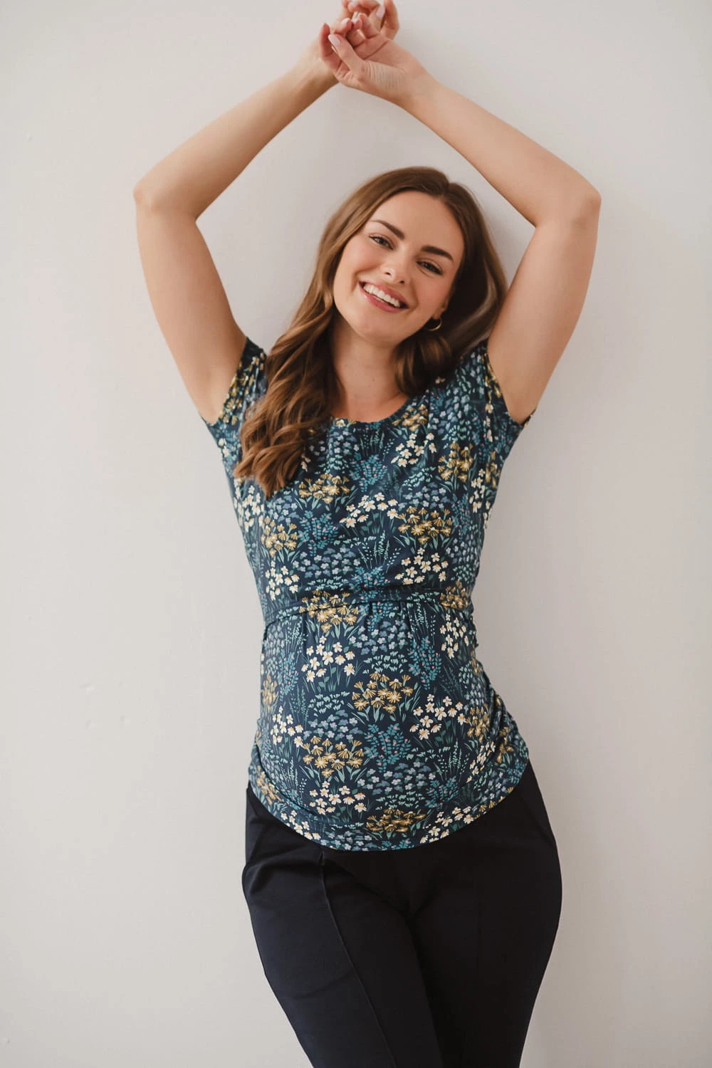 Granatowa bluzka ciążowa i do karmienia piersią Milk Shirt z kolekcji "Łąka" – styl, komfort i funkcjonalność w jednym
