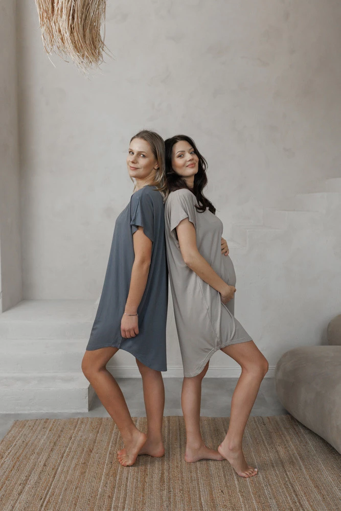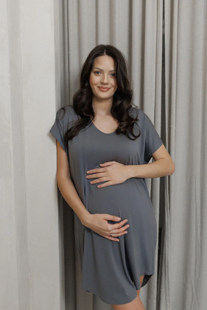 Homewear, koszula ciążowa i do karmienia MOCHA stalowa
