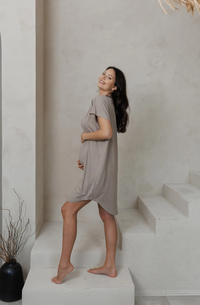Homewear, koszula ciążowa i do karmienia MOCHA beż