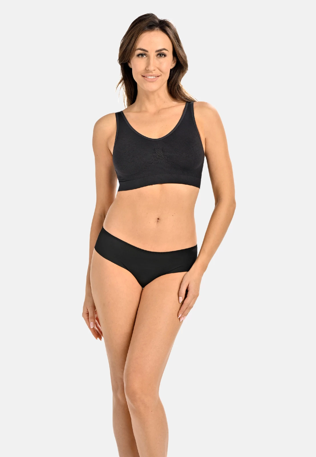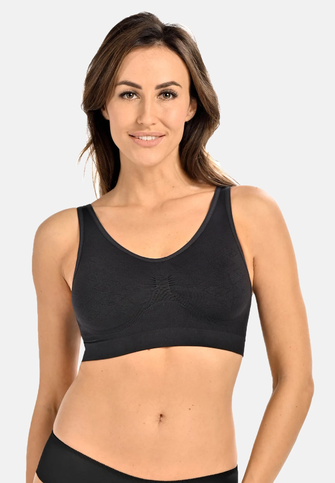 Bezszwowy top do karmienia Charlotte – czarny, komfortowy stanik dla mam karmiących