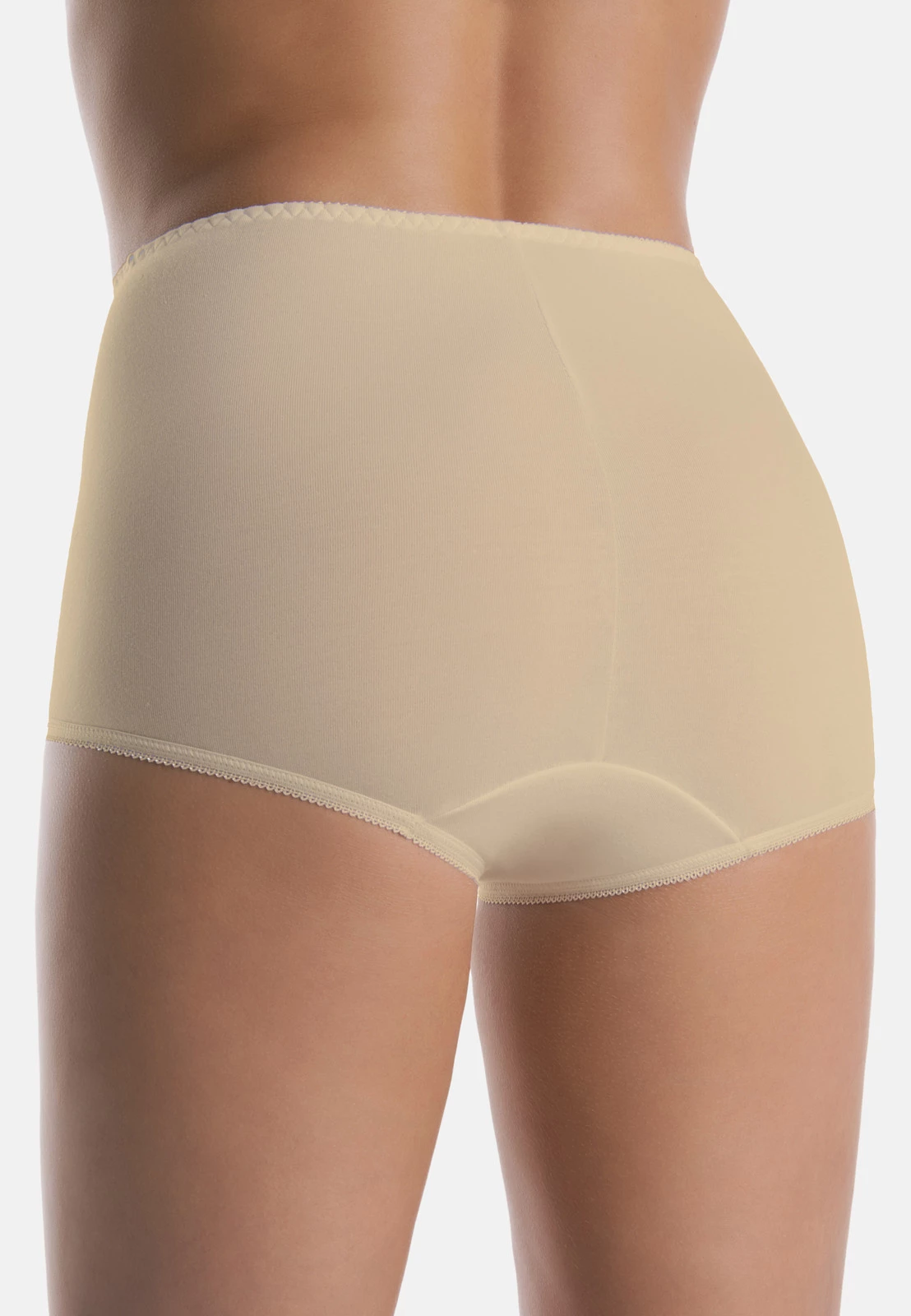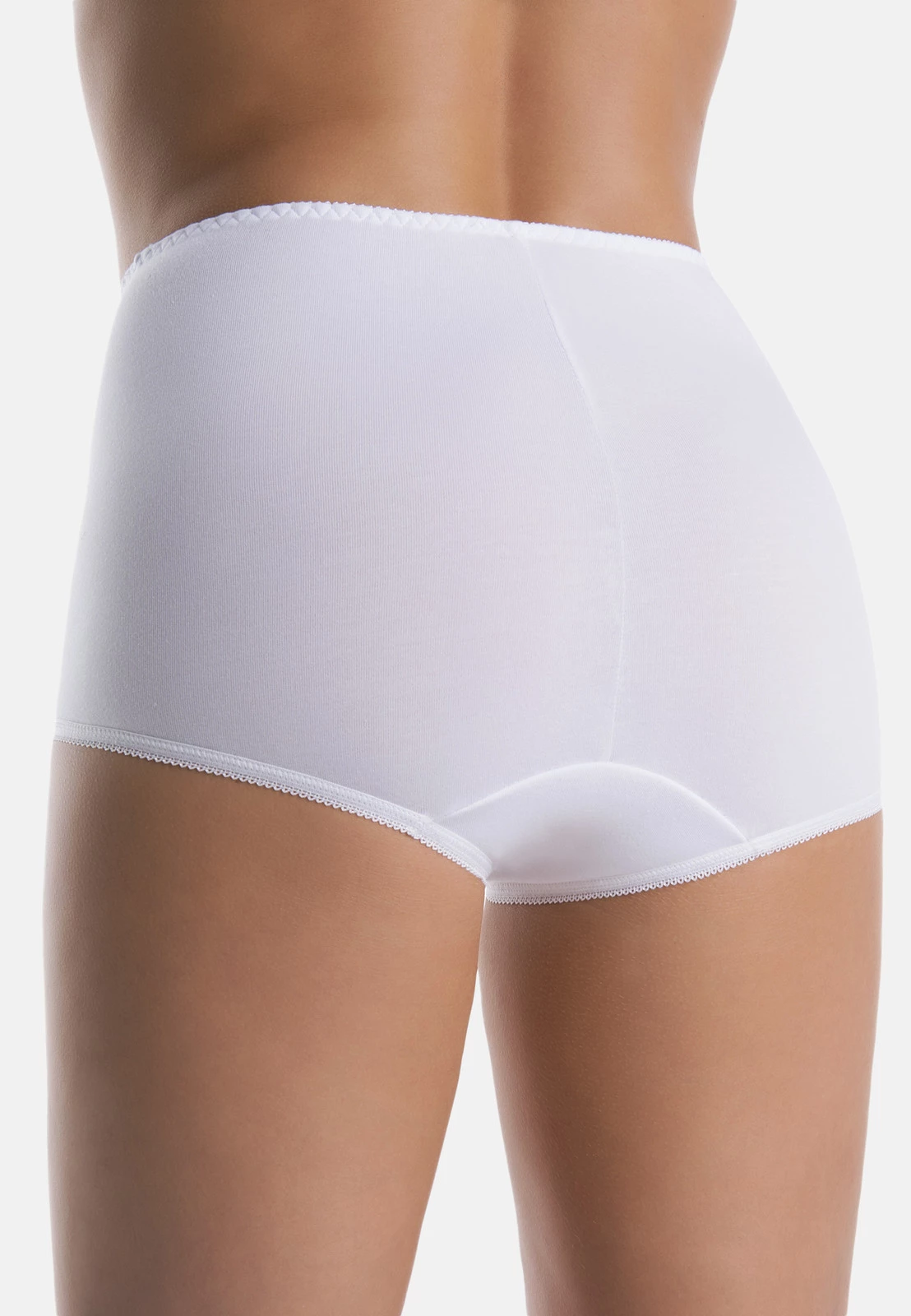- - 3-pack majtek bambusowych z wysokim stanem- Majtki w kolorze czarnym, beżowym i białym- Wykonane z materiału z dodatkiem włókna bambusowego- Kryją kobiece niedoskonałości i mankamenty