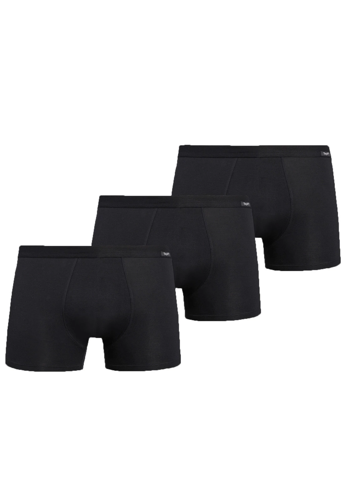 Zestaw męskich bokserek w głębokim czarnym kolorze. Trzypaki cieszą się dużą popularnością wśród kupujących, ponieważ pozwalają na zakup wysokiej jakości bielizny w korzystnej cenie.