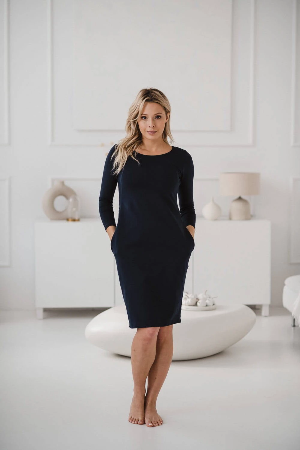 Wyróżnia ją idealny krój, podkreślający atuty sylwetki i tuszujący drobne niedoskonałości figury po ciąży. Sukienka została zaprojektowana z myślą o komforcie i dyskrecji podczas karmienia, dzięki wytrzymałym, dwukierunkowym zamkom, które możesz odsuwać zarówno od dołu, jak i od góry.
