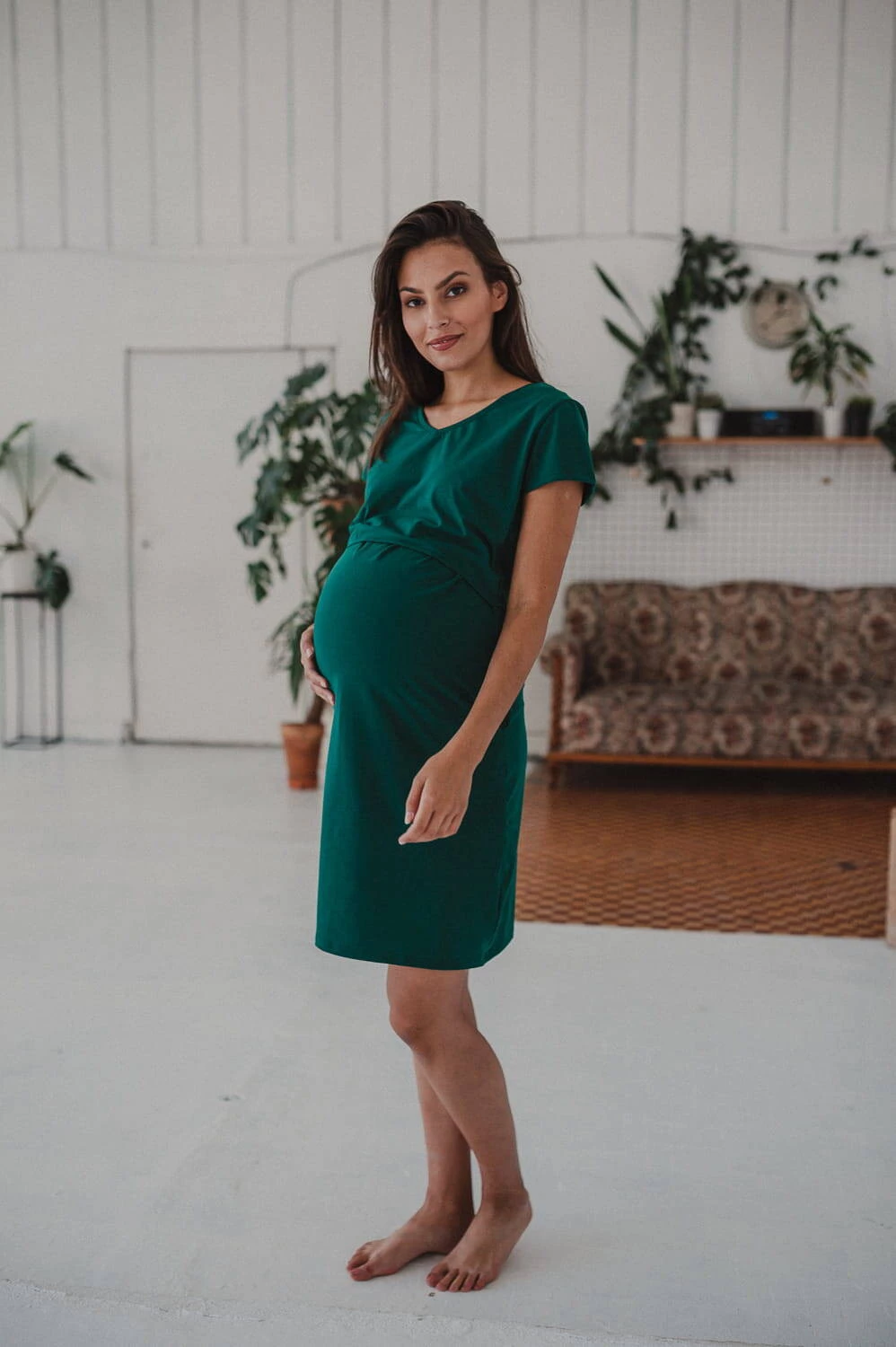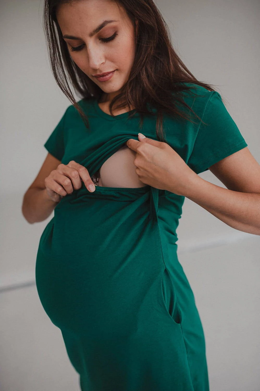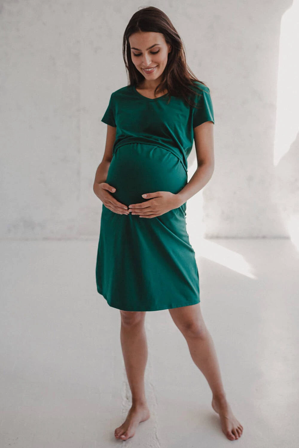 Koszula nocna ciążowa i do karmienia Night & Day - Butelkowa zieleń