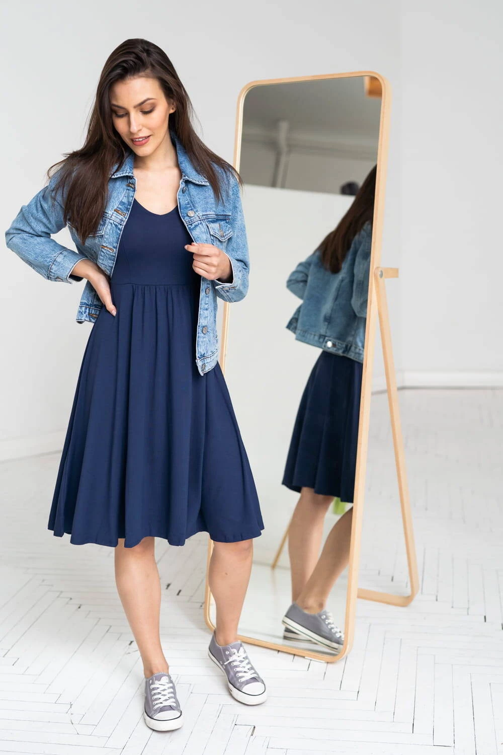 Okres karmienia piersią to wyjątkowy czas dlatego postaw na sukienkę dla mam w kolorze intensywnego granatu: