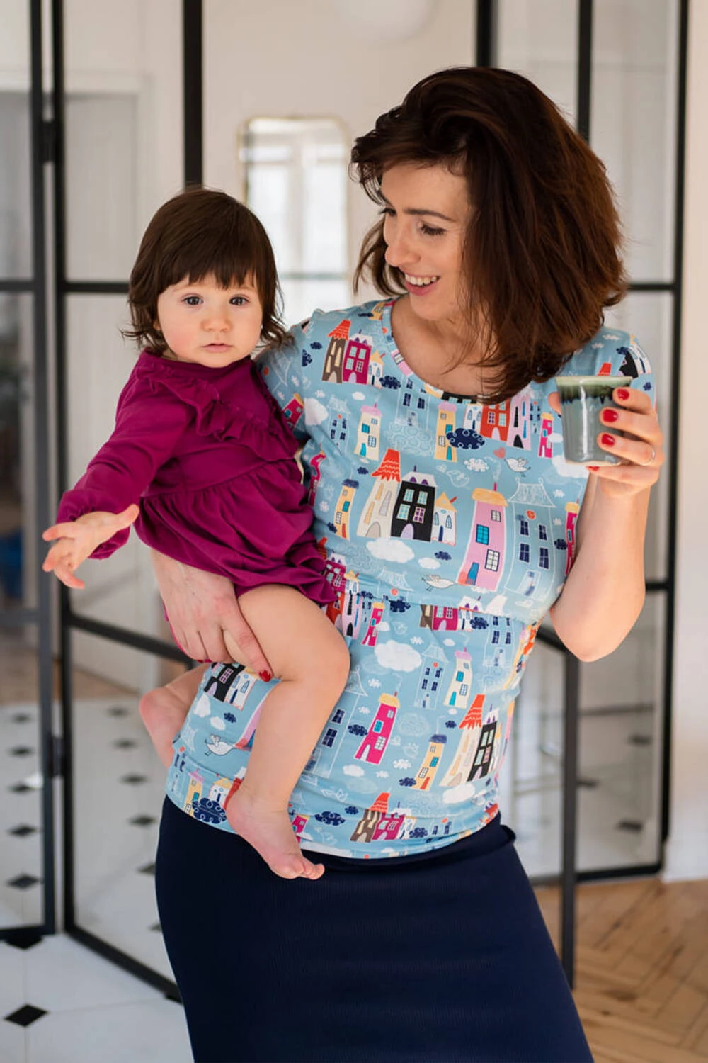 Ołówkowy krój granatowej spódnicy ciążowej sprawia, że jest ona doskonałą bazą do wielu stylizacji. Dopasowane spódnice ciążowe możesz nosić na co dzień z trampkami, balerinami lub szpilkami, w zależności od okazji. Miękka dzianina nie powoduje ucisku, zapewniając swobodę ruchu. Spódnicę możesz nosić naciągniętą na brzuszek lub w cieplejsze dni pod brzuszkiem, jako spódnicę w długości midi.