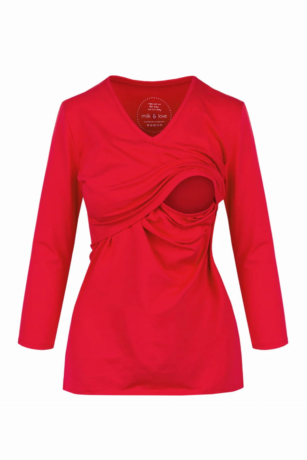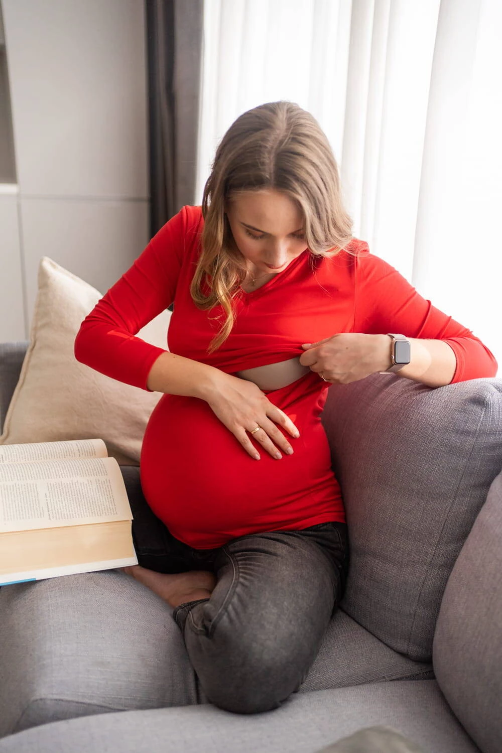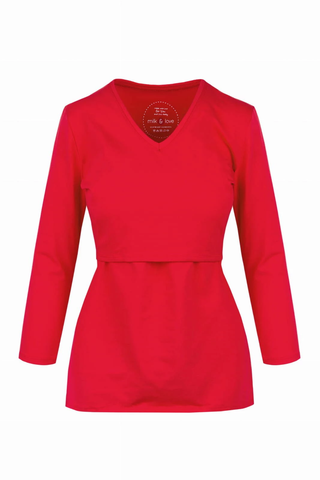 Bluzka ciążowa i do karmienia z długim rękawem Milk Shirt - Czerwona