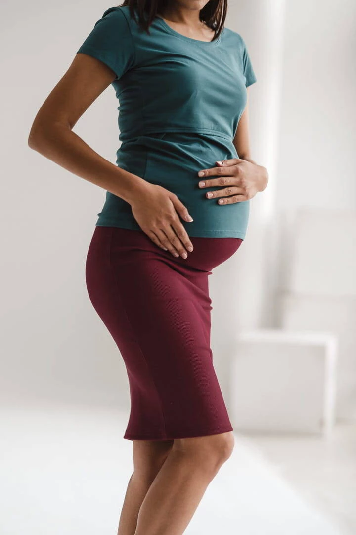 Wysokiej klasy odzież dla kobiet w ciąży, dostępna w Formommy, umożliwia noszenie bordowej ołówkowej spódnicy ciążowej nawet po porodzie. Nasze ubrania ciążowe i do karmienia zostały specjalnie zaprojektowane, aby służyć przez wiele lat. Wyjątkowa ołówkowa spódnica ciążowa Tummy doskonale dopasowuje się do Twojej sylwetki, nadając jej niesamowity wygląd, niezależnie od tego, czy nosisz ją w trakcie ciąży, czy już po porodzie. Te komfortowe ołówkowe spódnice ciążowe dostępne są w naszym sklepie w różnorodnych modnych kolorach - sprawdź, w którym z nich czujesz się najlepiej. Nie ograniczaj się do jednego koloru - stwórz modny look ciążowy razem z naszą serią Tummy, idealnie dopasowującą się do Twojej sylwetki i rosnącego brzuszka ciążowego.