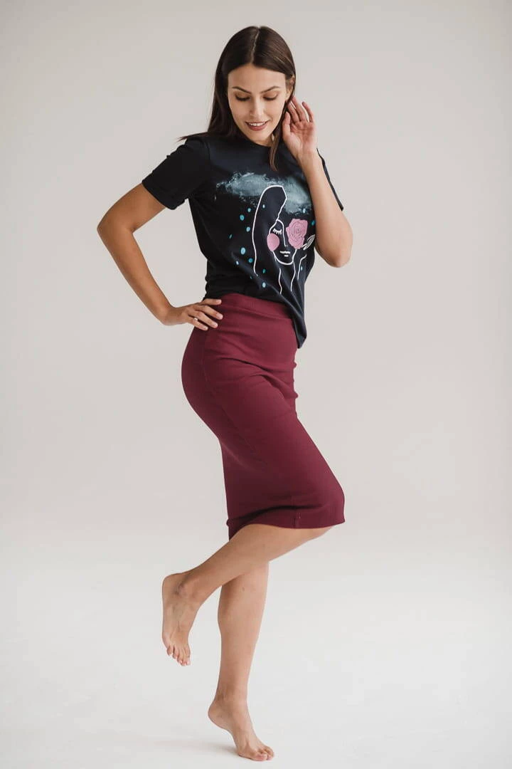 Przedstawiamy wszechstronną spódnicę, doskonałą na okres ciąży oraz noszenia po nim. Zachęcamy do zapoznania się z naszym modelem w modnym bordowym kolorze, dostępnym w kolekcji odzieży ciążowej od polskiej marki milkandlove. Nasze kobiece spódnice ciążowe, dostępne w sklepie internetowym Formommy, to zawsze eleganckie projekty wykonane z wysokogatunkowych materiałów, które z pewnością zadowolą nawet najbardziej wymagające Klientki. Już teraz postaw na wysokiej jakości spódnice damskie dla kobiet w ciąży i ciesz się modnymi zestawami, które stworzysz dzięki stylizacji z tym wyjątkowym produktem.