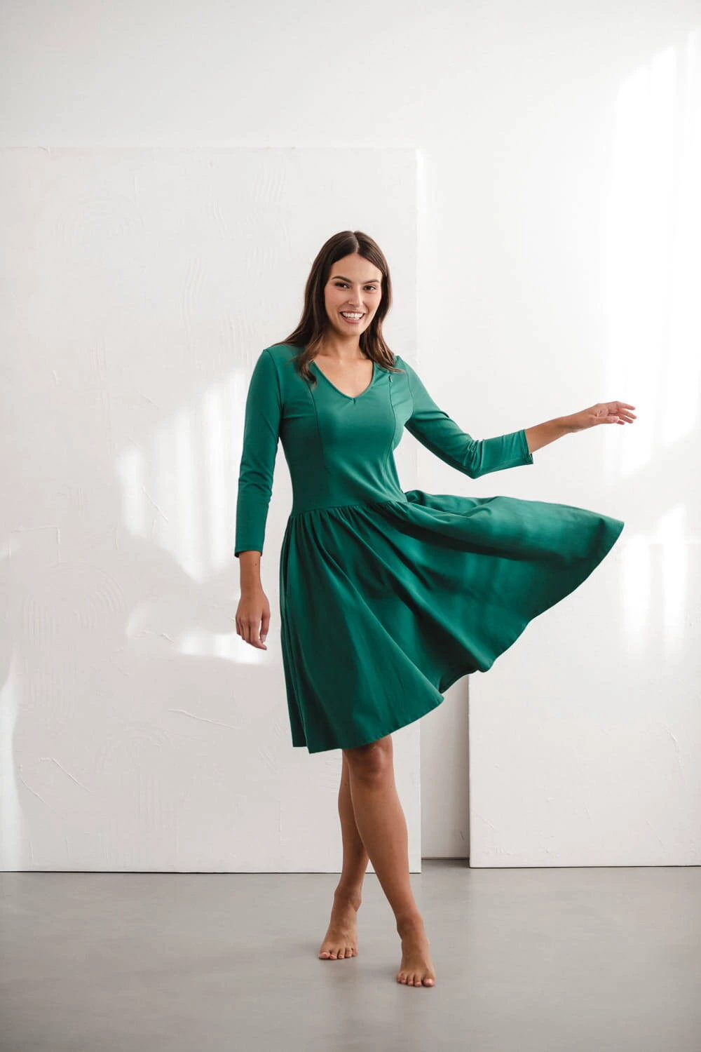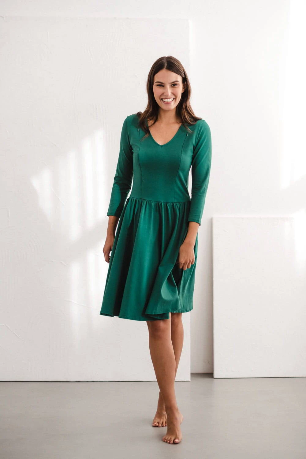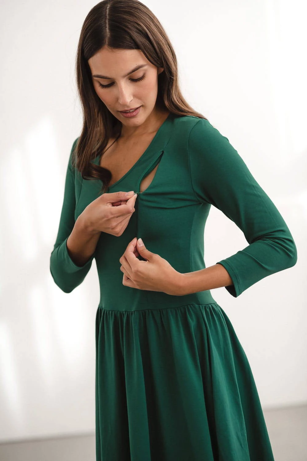 Sukienka na okres karmienia piersią i dalej, jest nie tylko praktyczna, ale także trwała - nasza zielona sukienka dla karmiących mam nie odkształca się nawet po wielu praniach, co sprawia, że będzie Ci towarzyszyć przez wiele sezonów. A dzięki dwóm pojemnym kieszonką, sukienka stanie się Twoją trzecią ręką, pomagając Ci w przechowywaniu wszystkich niezbędnych drobiazgów podczas karmienia lub spaceru.