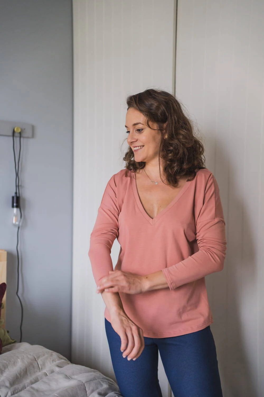 Dwustronna bluzka Two Ways długi rękaw herbal rose