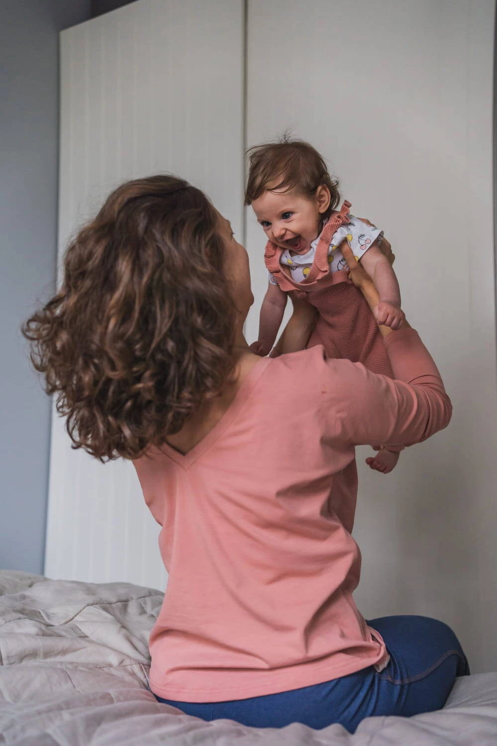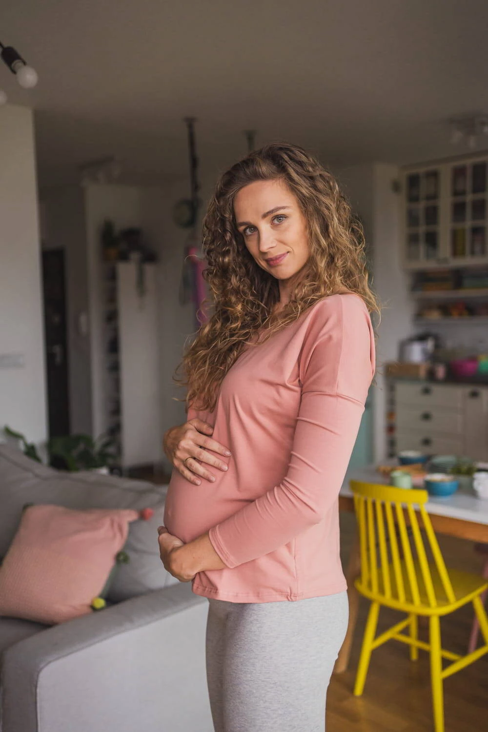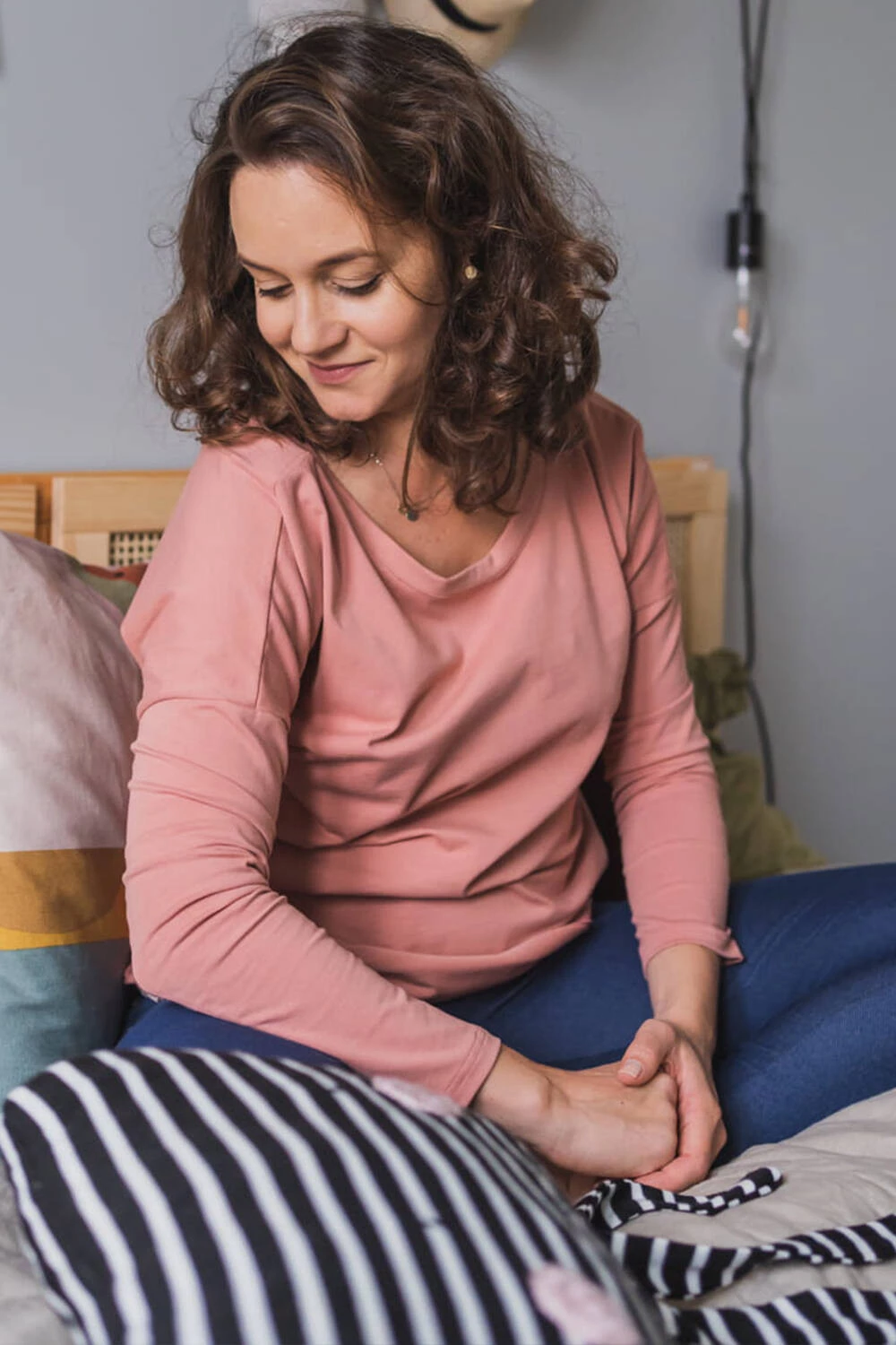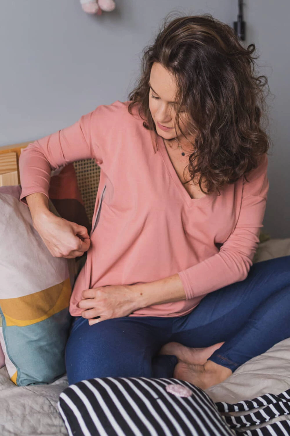 - Elastyczna dzianina dostosuje się do zmiany kształtu ciała w czasie ciąży.