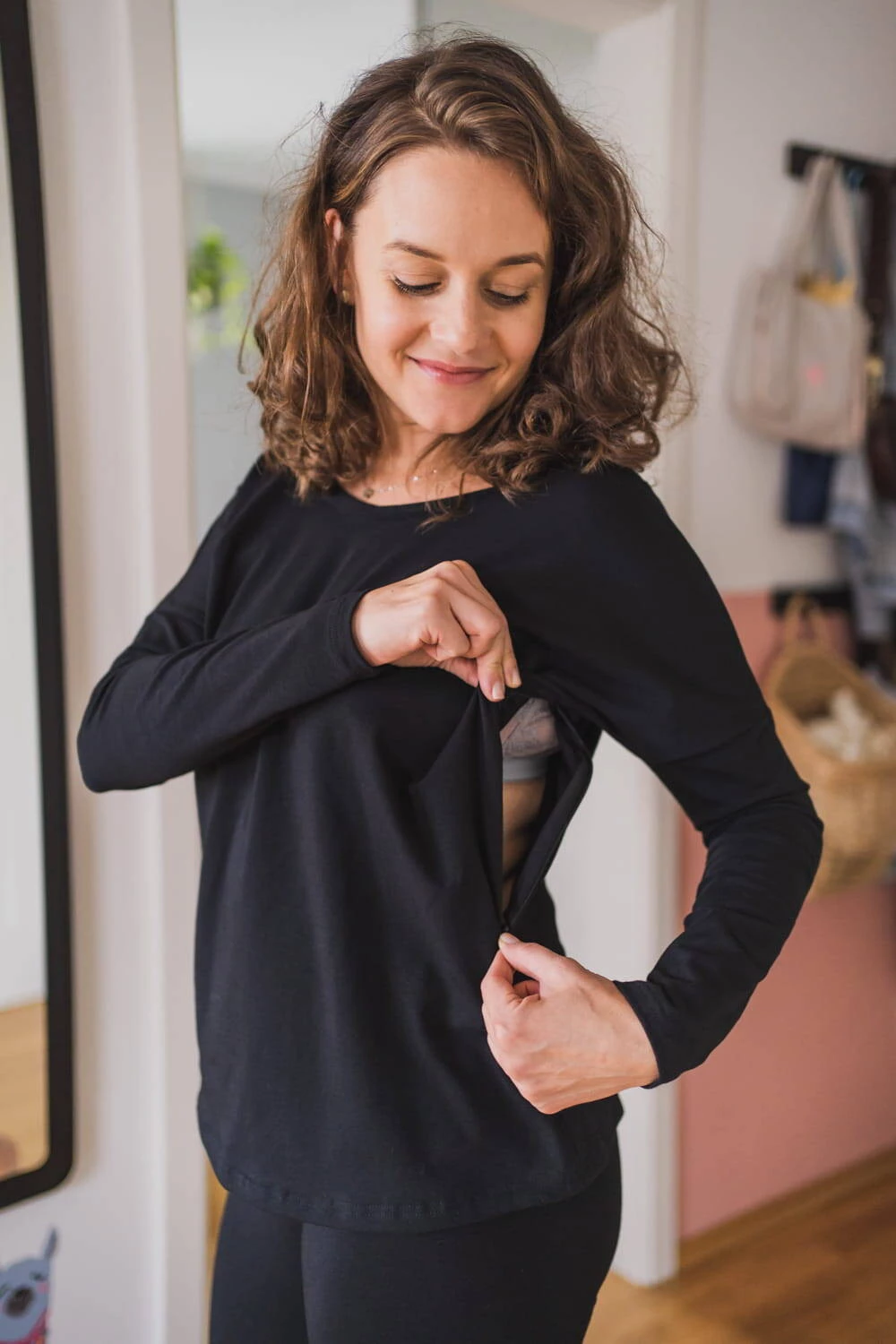 Dwustronna bluzka Two Ways długi rękaw czarna