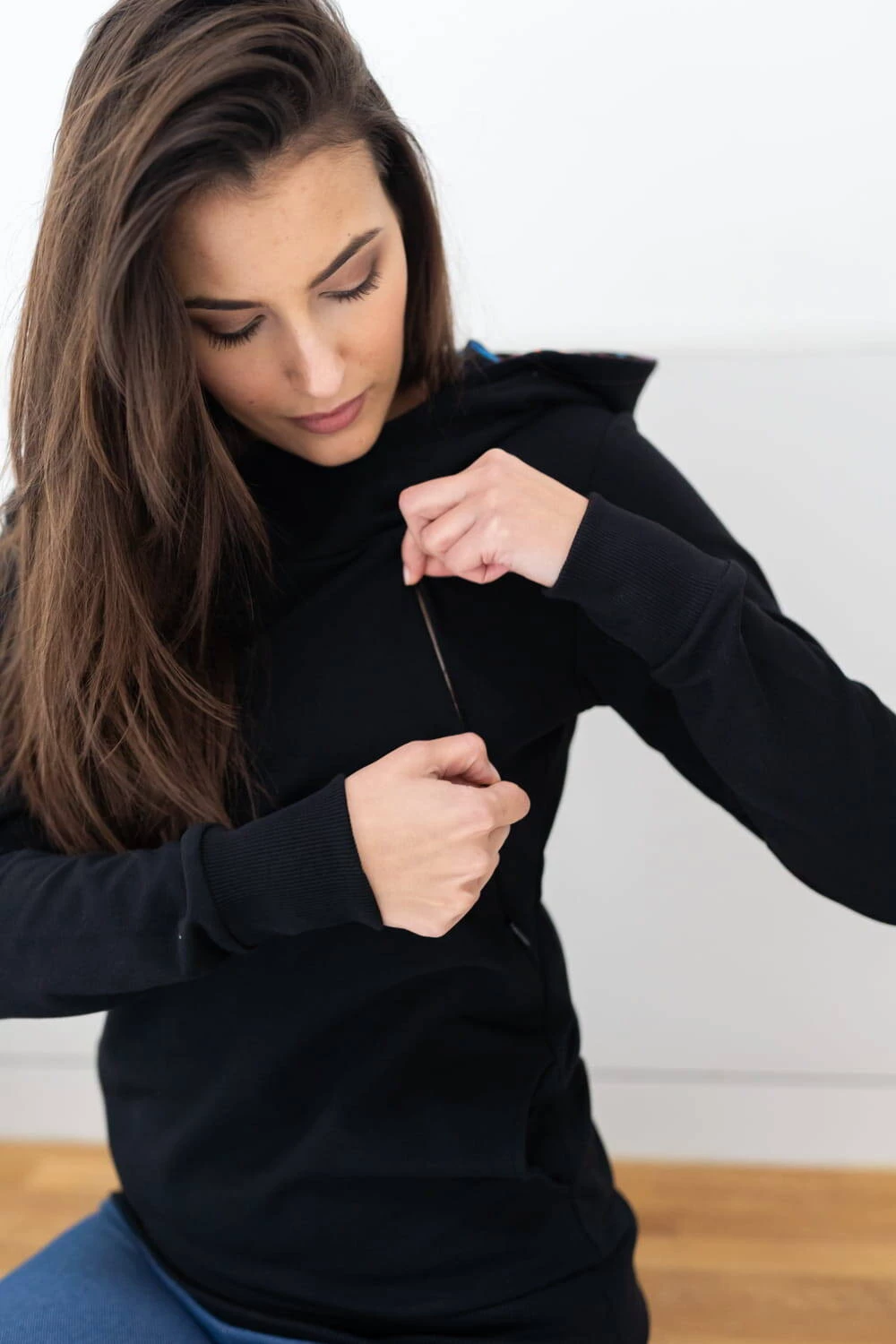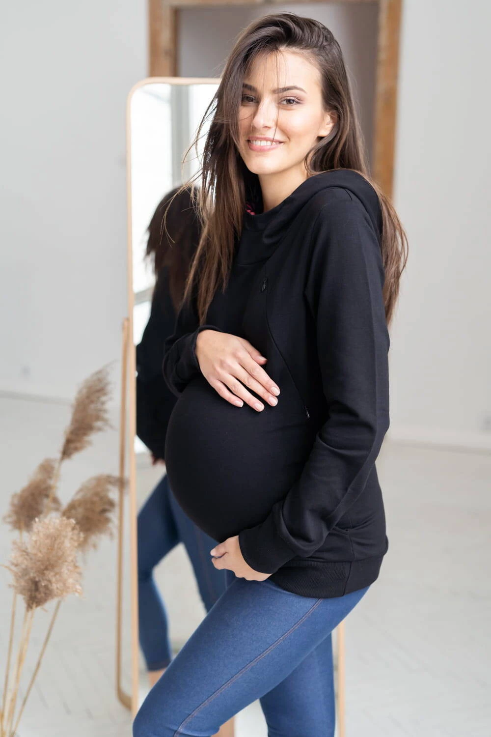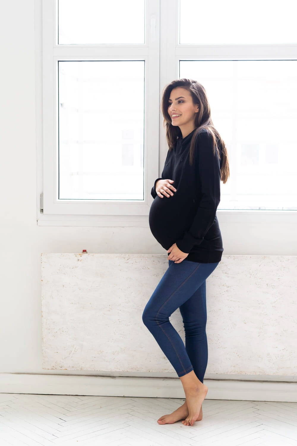 Luźny krój i elastyczny materiał: Bluza dopasowuje się do brzuszka ciążowego, a po porodzie wraca do pierwotnych kształtów.