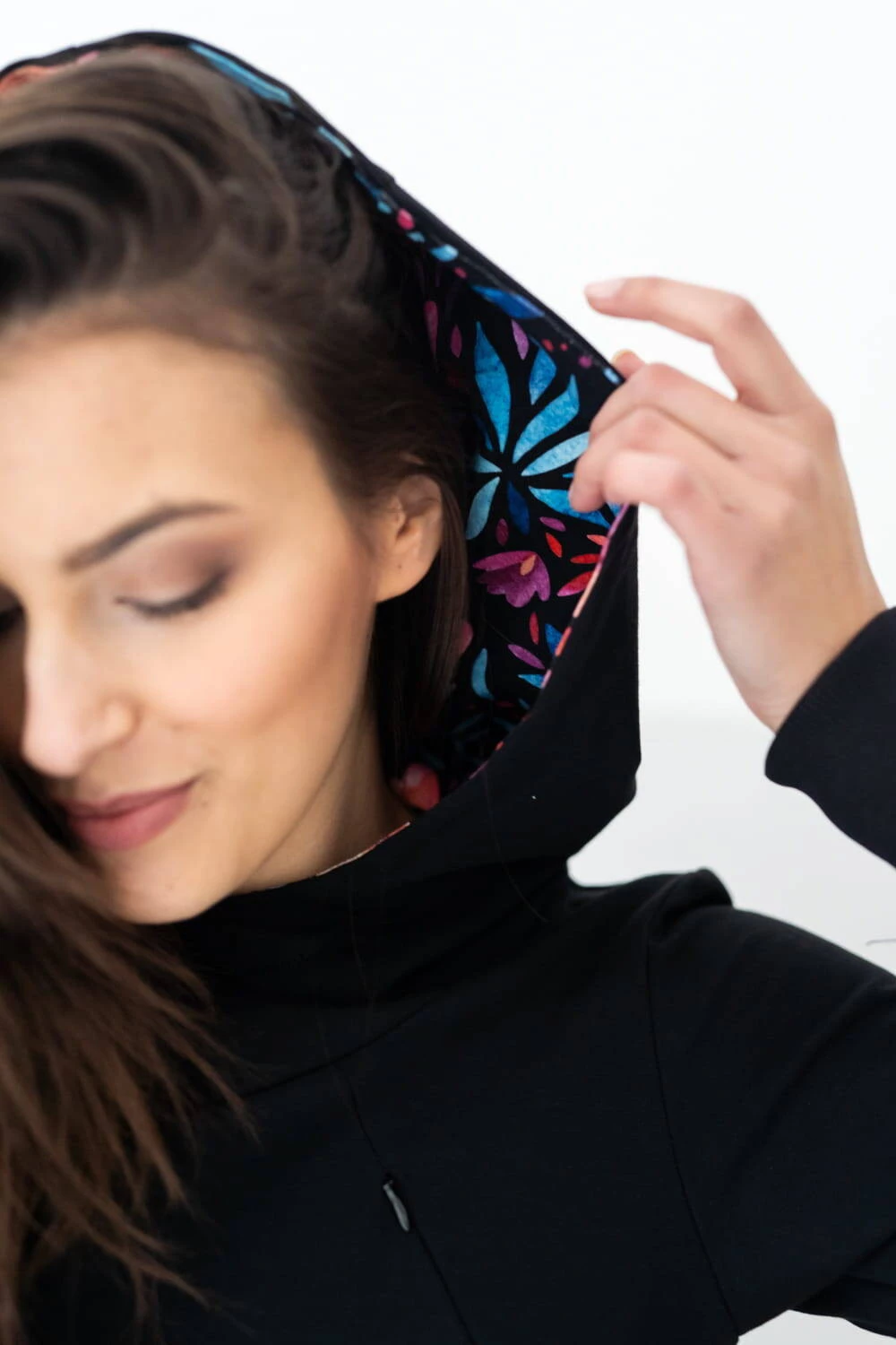 Energetyczny print w stylu folk w kapturze: Dodaje bluzie charakteru i oryginalności.