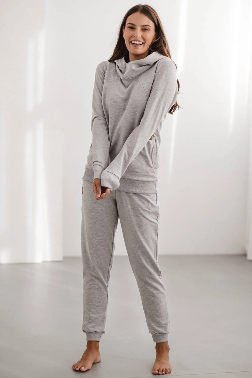 Spodnie ciążowe dresowe - Jasny szary melanż