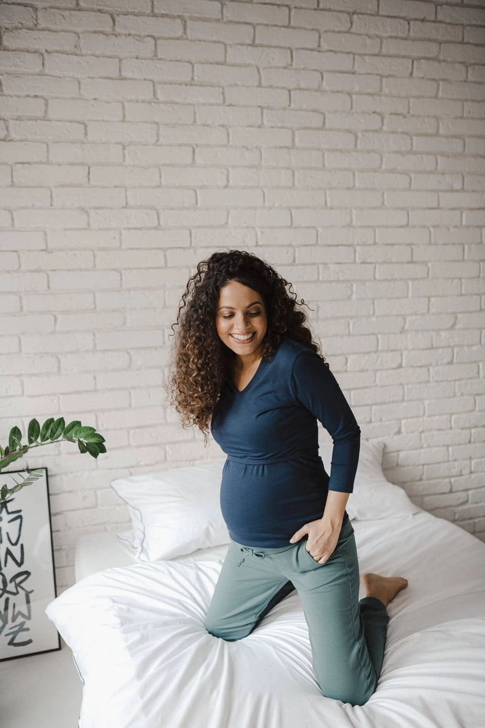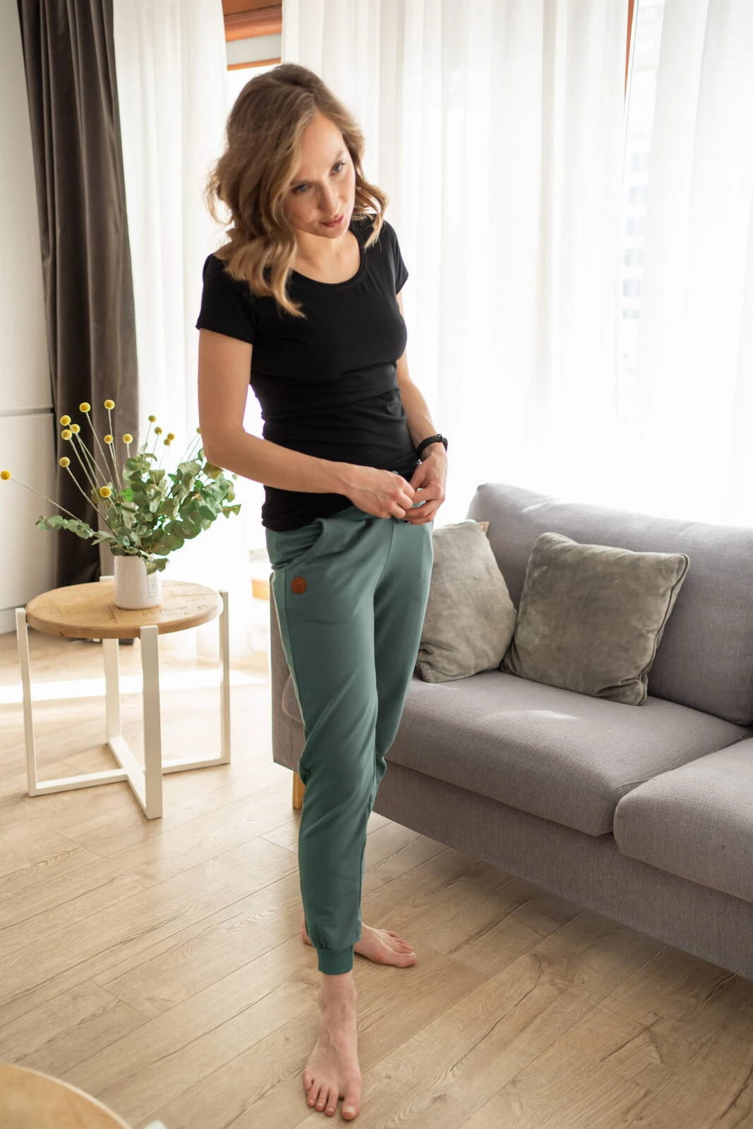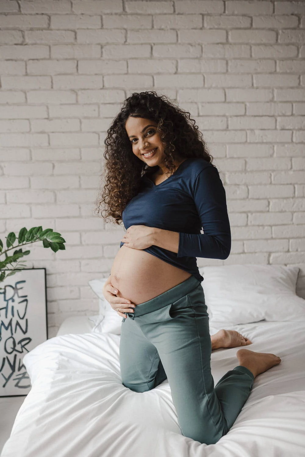 Jeśli oczekujesz dziecka i pragniesz nadal prezentować się kobieco i atrakcyjnie, ale też czuć się wygodnie - postaw na ubrania ciążowe najwyższej jakości. Odzież ciążowa zapewni Ci komfort i wsparcie dla rosnącego brzuszka, co staje się nieodzowne w tym wyjątkowym okresie. Idealne spodnie dresowe w odcieniu zieleni to proste rozwiązanie, zwłaszcza w ciepłe dni, gdy można je zestawić z delikatną bawełnianą koszulką. Komfortowe spodnie ciążowe staną się również niezastąpione w zimne dni, gdy połączysz je z ciepłą bluzą ciążową do karmienia z tej samej kolekcji. Praktyczne spodnie ciążowe stanowią kluczowy element w Twojej szafie podczas ciąży i po porodzie.