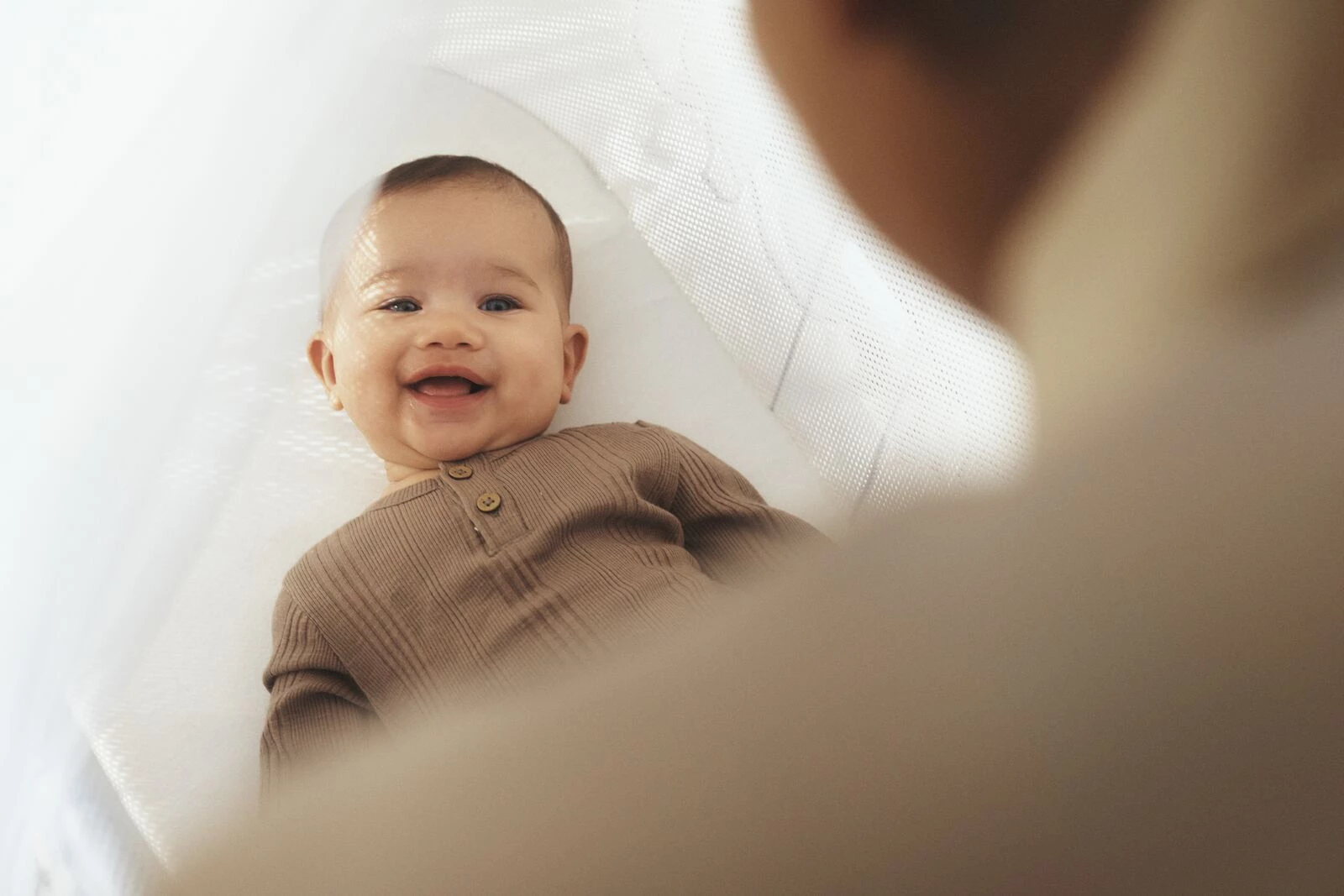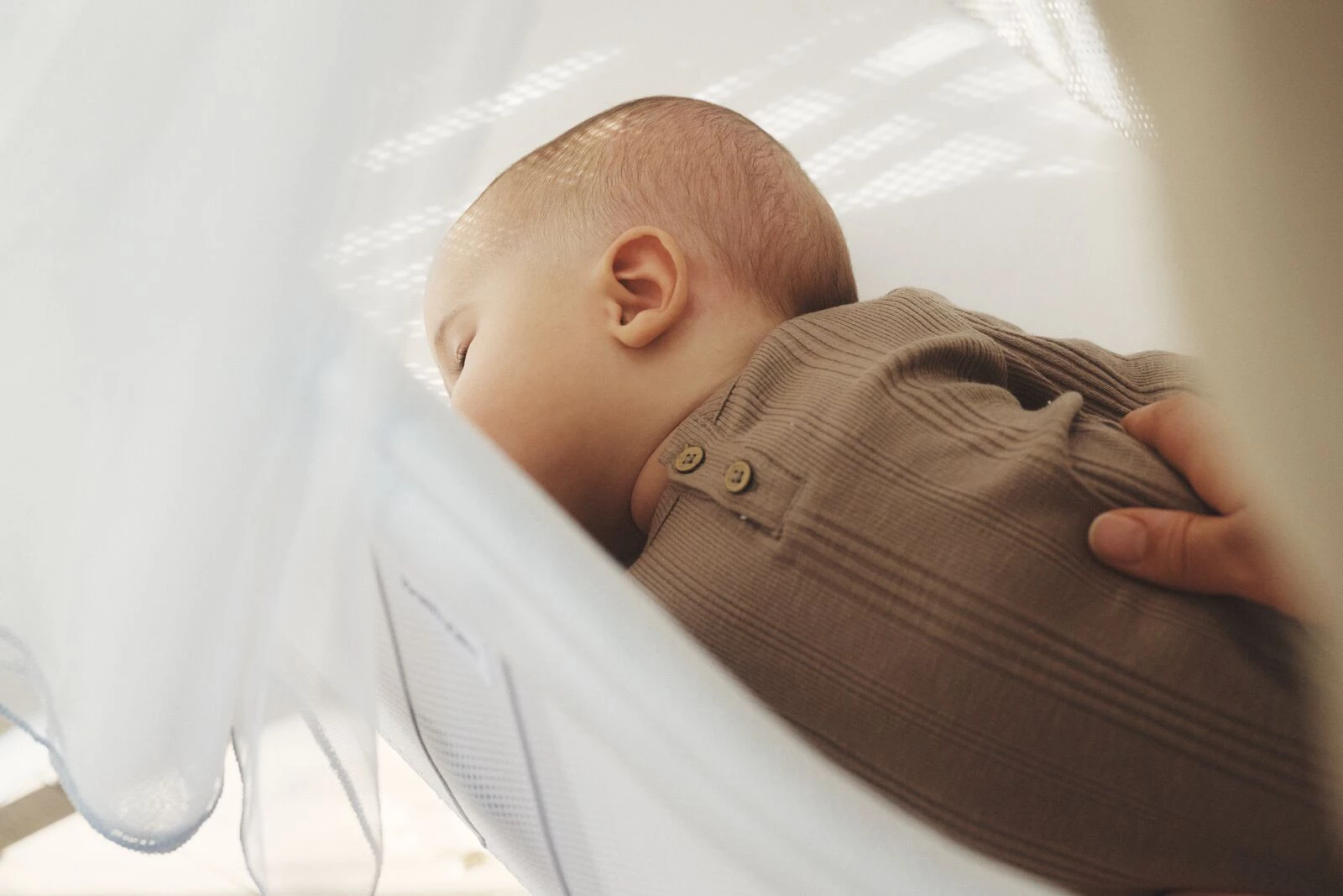 Do kołyski można dokupić baldachim (do kupienia w naszym sklepie tutaj) wykonany z miękkiej i przewiewnej tkaniny mesh. Baldachim odbija i zmiękcza ostre światło zewnętrzne i pełni funkcję moskitiery.