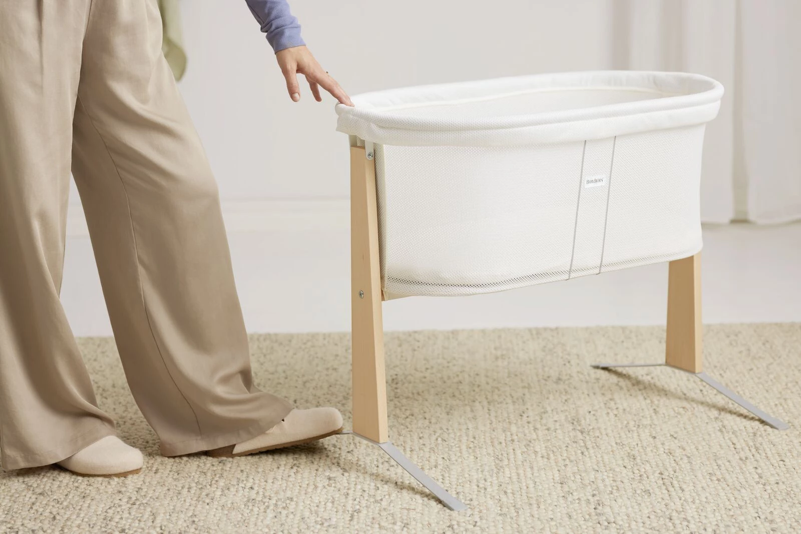 Unikalny projekt BABYBJÖRN zapewnia delikatne kołysanie, podobne do tego w wózeczku. Budowa kołyski gwarantuje, że w trakcie bujania nie utknie w żadnej pozycji, która mogłaby być niebezpieczna. Kołyska posiada stabilną konstrukcję, a ochronne podkładki antypoślizgowe zabezpieczają podstawę przed przesuwaniem się i chronią podłogę.