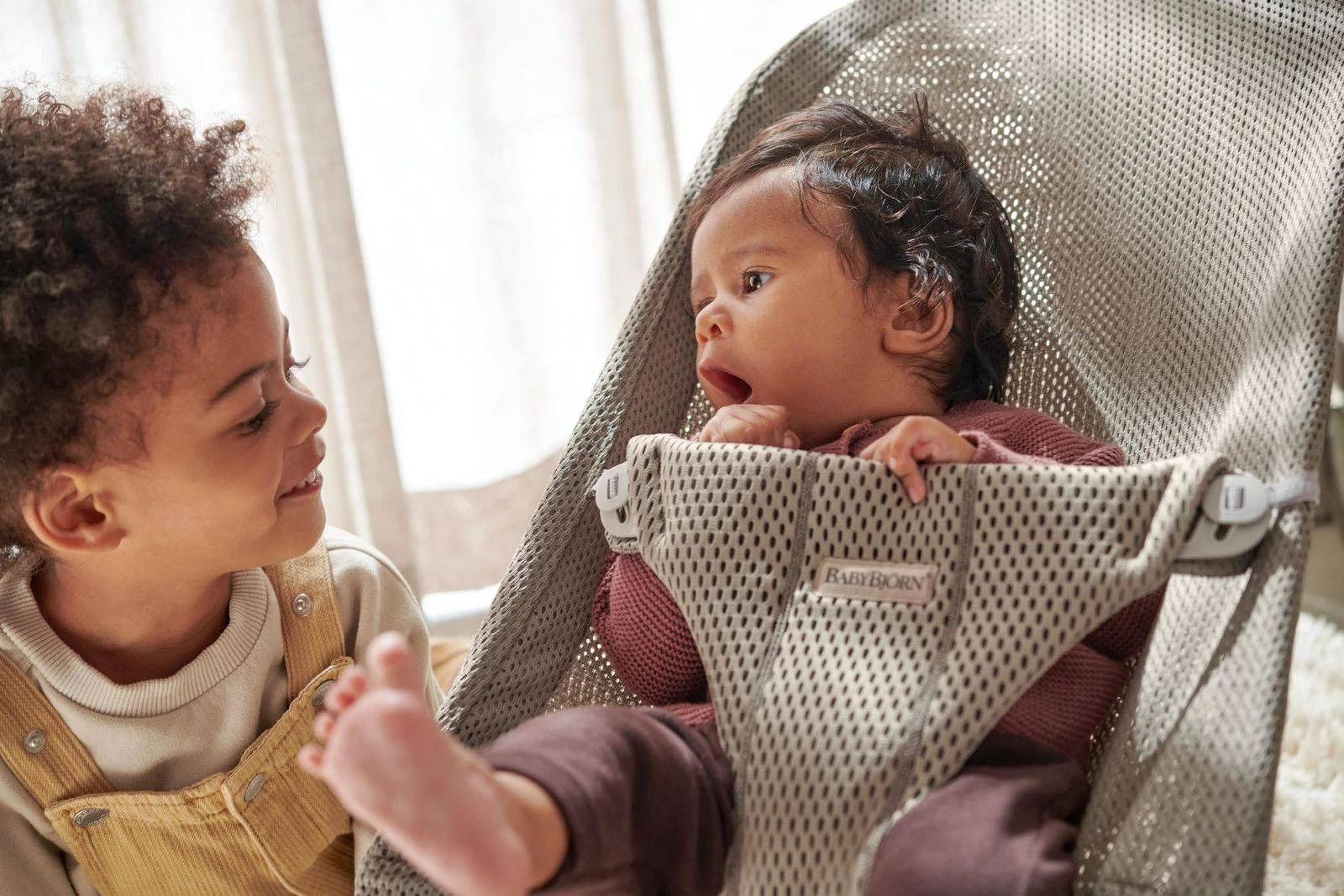 Leżaczek BabyBjörn kołysze się delikatnie, gdy dziecko macha rękami i nogami. Nie są wymagane żadne baterie – leżaczek BabyBjörn dla dzieci to czysta zabawa!