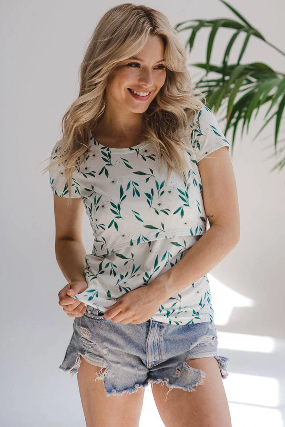Bluzka ciążowa i do karmienia Milk Shirt krótki rękaw w listki na białym