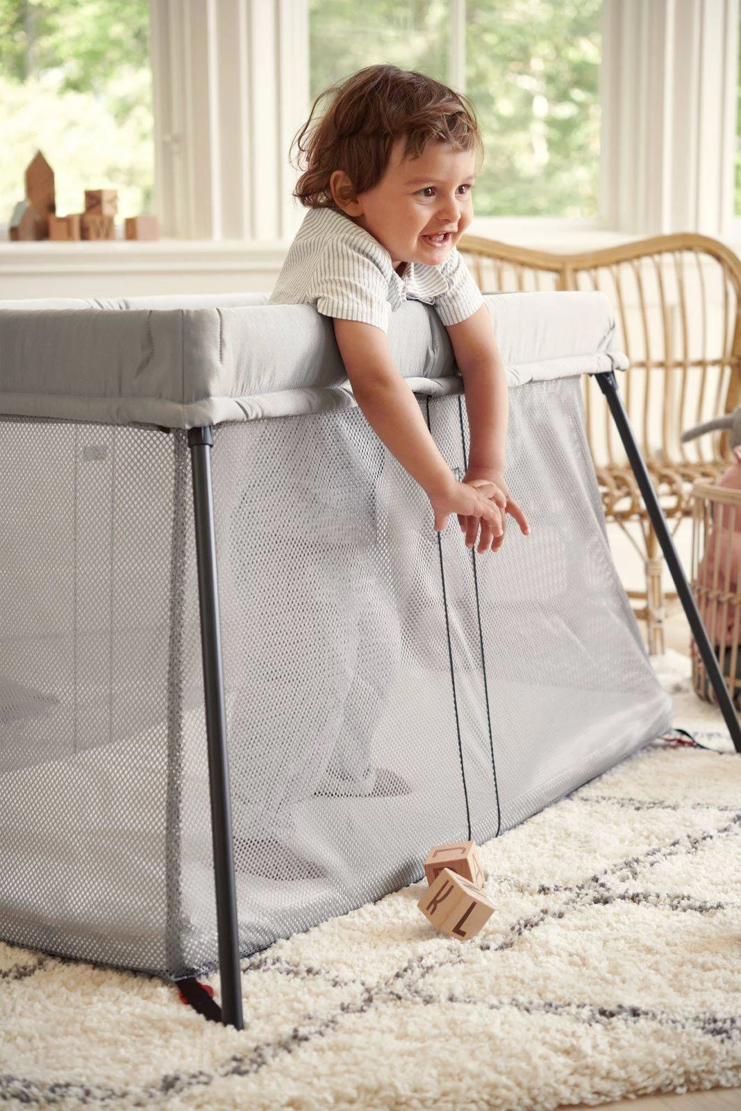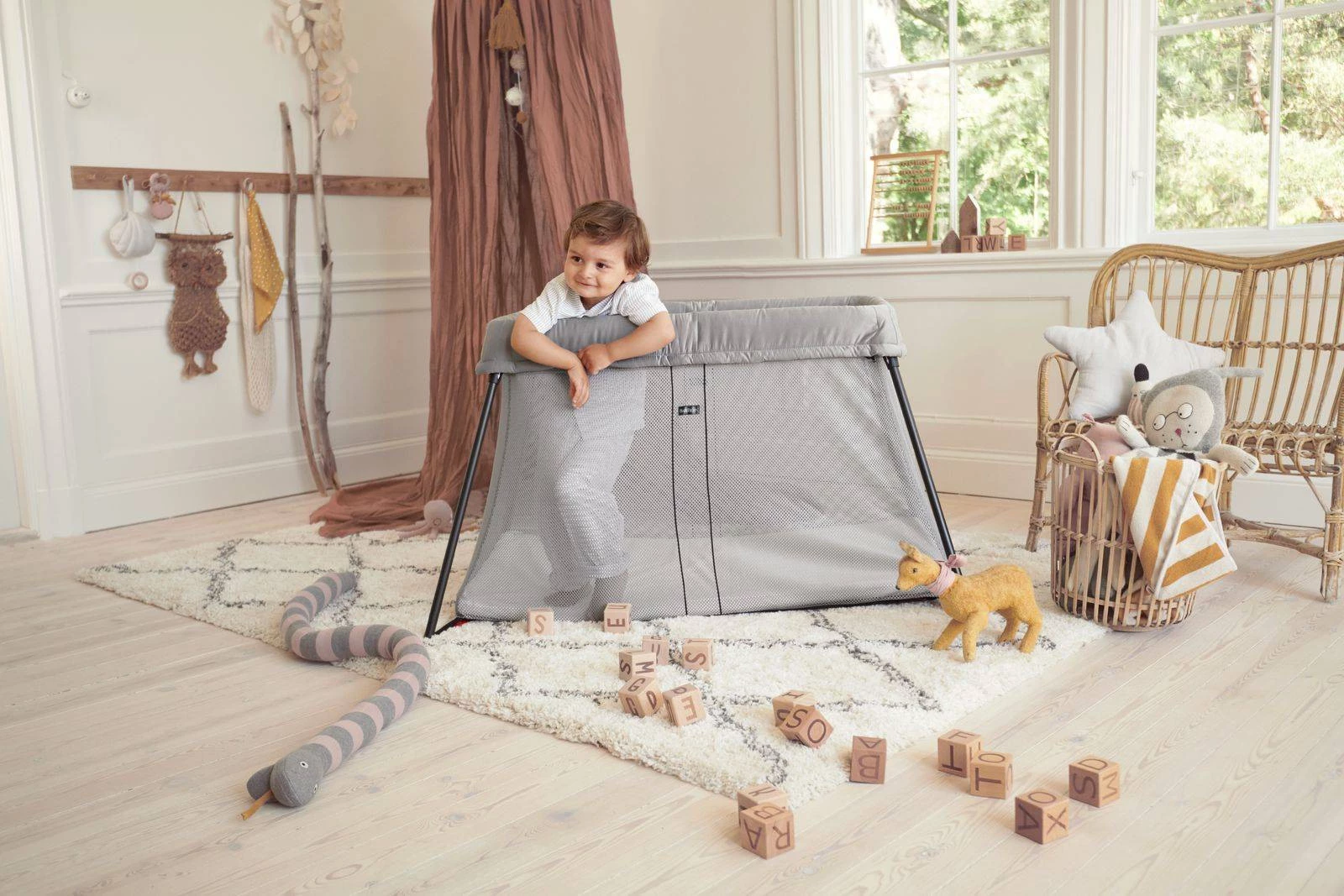 Łóżeczko podróżne BABYBJÖRN, które można rozstawić jednym prostym ruchem. Nogi rozkładają się automatycznie, a po umieszczeniu materaca powstaje stabilne łóżeczko do korzystania w domu lub w podróży. Nieużywane, można równie szybko i łatwo złożyć. - Bezpieczne dla dziecka