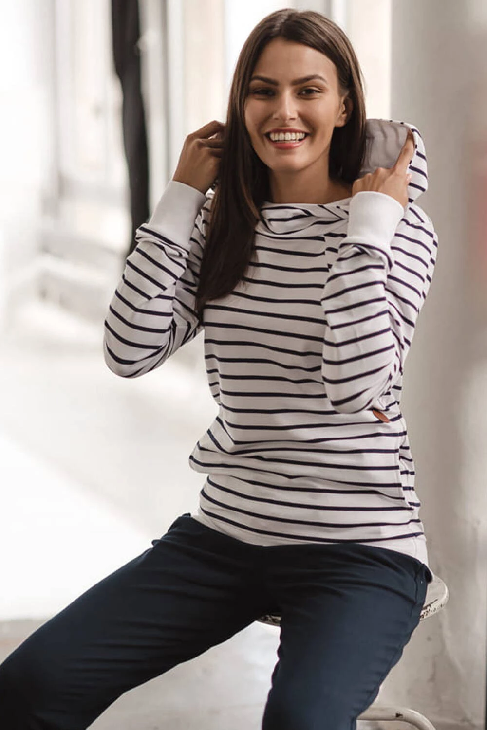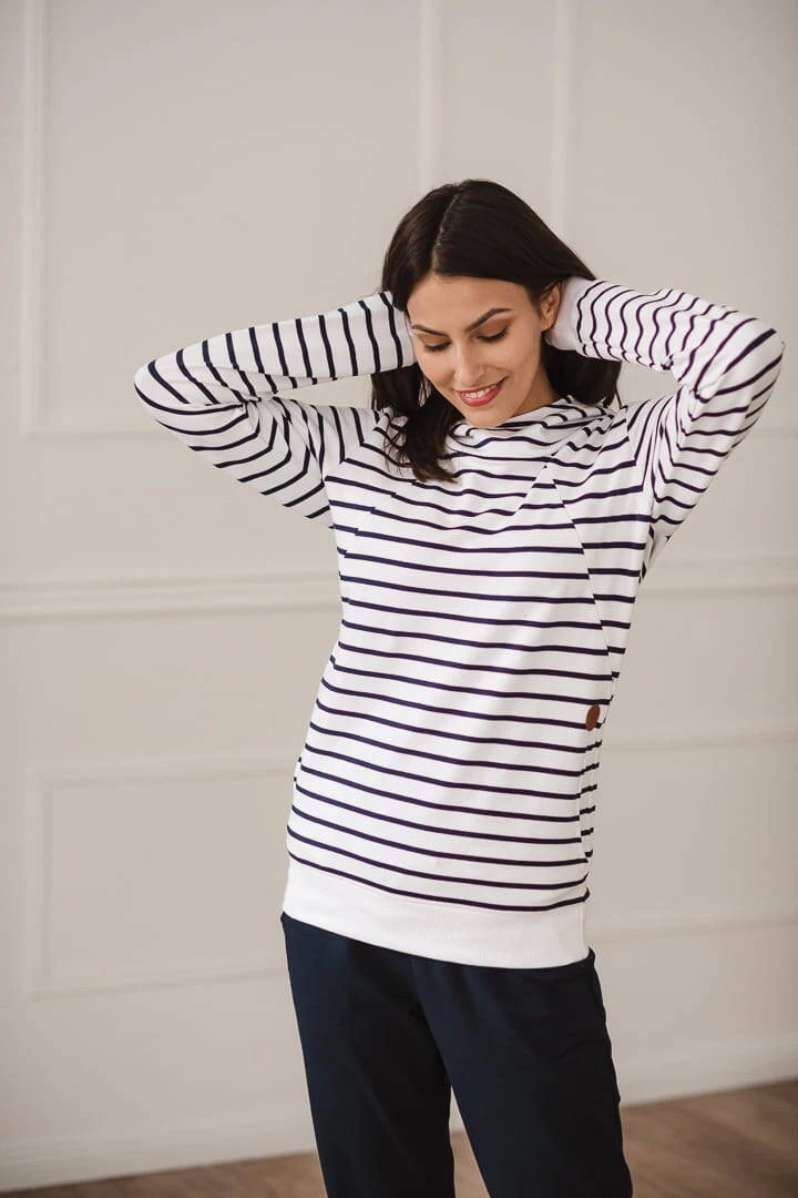 Bluza ciążowa i do karmienia Milk Please w granatowo-kremowe paski