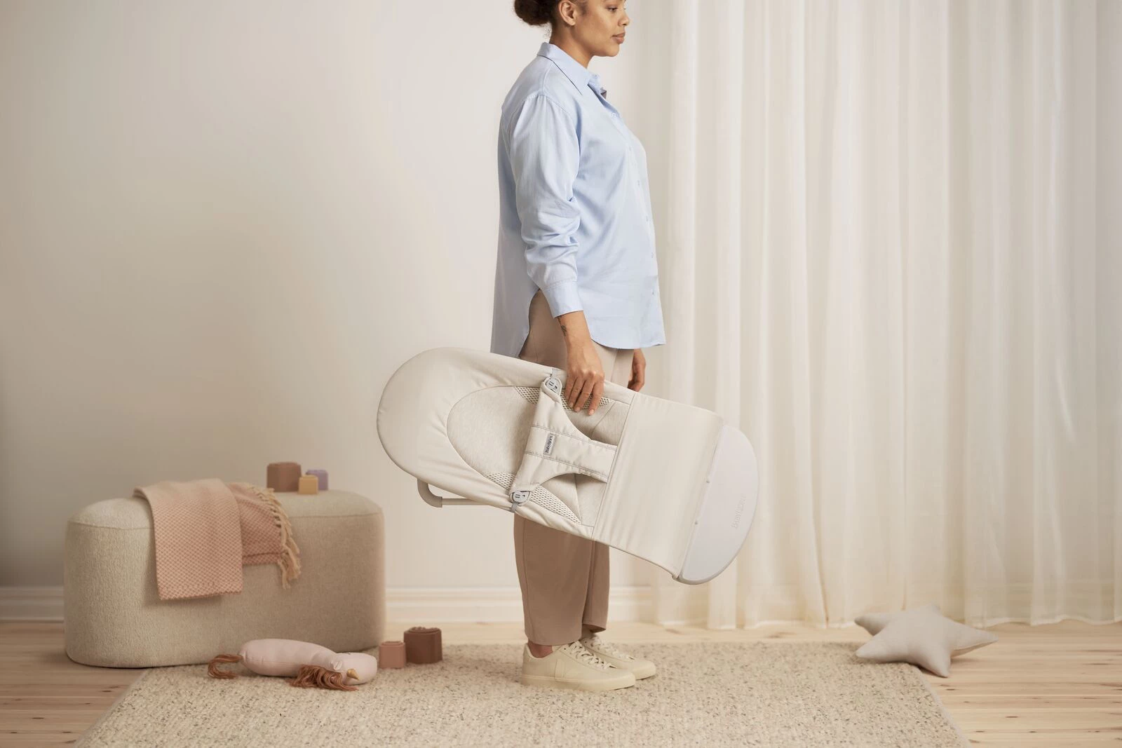 BABYBJORN - leżaczek BALANCE SOFT WOVEN/JERSEY Tri Fabric, Jasny Beż
